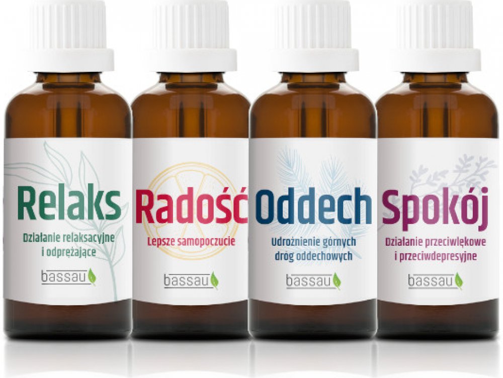 Bassau Vonné esenciální/éterické oleje 100 % přírodní Sada Směsí 4 x 15 ml