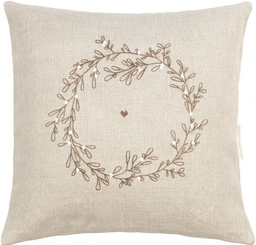 POVLAK + VÝPLŇPolštář i s výplní s vyšívaným věnečkem z jmelí v přírodním provedení od holandské firmy Bastion Collections.Povlak na polštář je ze 100% bavlny a je pratelný.Polštář je i s výplní.Rozměr: 50 x 50 cmMateriál: 100% len.Název výrobce: Bastion CollectionsAdresa výrobce: IJsselveld 2b, 3417 XH MontfoortKontakt: info@bastioncollections.nl