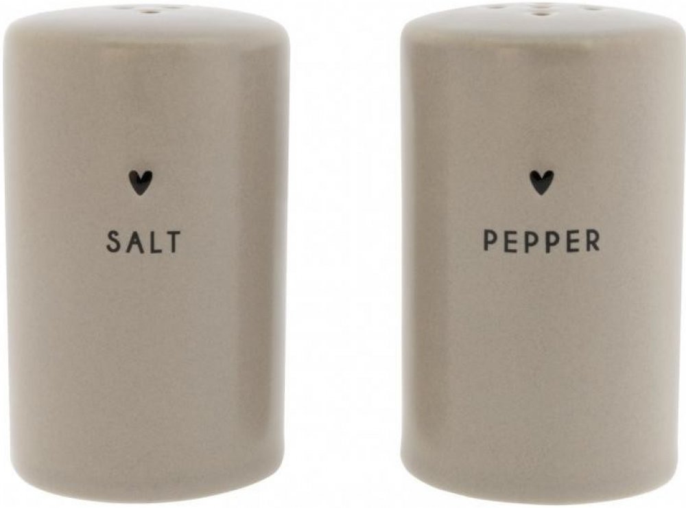 Ručně malovaná slánka a pepřenka se srdíčkem a nápisem "sůl + pepř" v černé barvěVhodné do mikrovlnné trouby a myčky nádobí.Rozměr: 7 cmNázev výrobce: Bastion CollectionsAdresa výrobce: IJsselveld 2b, 3417 XH MontfoortKontakt: info@bastioncollections.nl