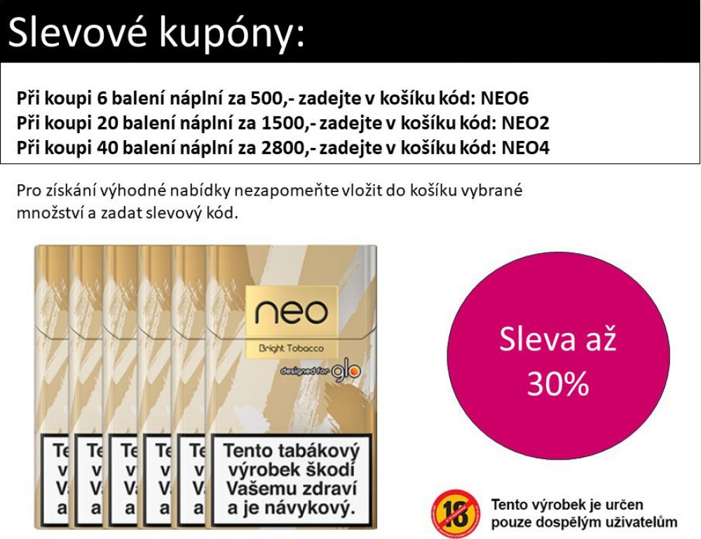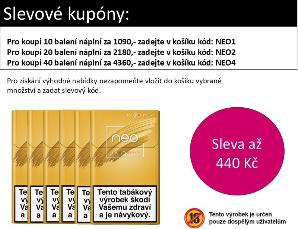 Tabákové náplně neo™ v novém formátu obsahují více tabáku, které jsou určeny pro zařízení glo™ Hyper X2 a glo™ HYPER X2 AIR.