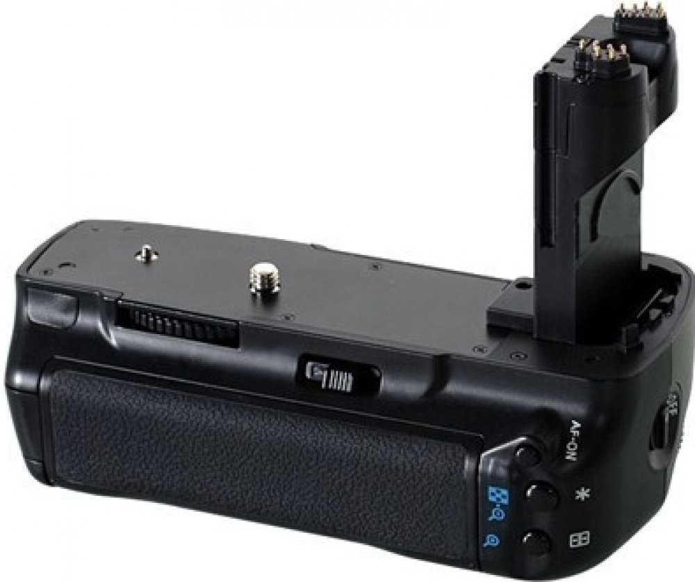 Bateriový grip vám umožní udělat více fotek bez nutnosti častého dobíjení akumulátoru. Grip má vnitřní kontakty kompatibilní s akumulátory značky CANON LP-E6 nebo 6 kusy baterií AAGrip je dodáván se 2 zásobníky1x zásobník pro 2 akumulátory LP-E61x zásobník pro 6 baterií typu AAGrip má několik funkčních tlačítek viz foto. Možnost připevnění popruhu nebo řemínku.Ergonomocký tvar umožňuje pohodlné uchopení celé sestavy (fotoaparát/grip).Uchycení fotoaparátu na grip pomocí klasického závitu 1/4.Uchycení gripu na stativ pomocí závitu 1/4. Kompletní certifikáty CE a Rohs zaručují kvalitu a bezpečnost výrobku.