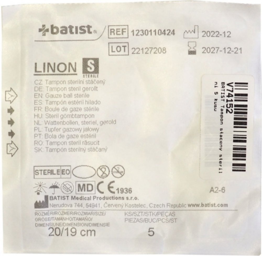 Batist Tampón z gázy stáčený sterilní Linon 20 x 19/5 ks