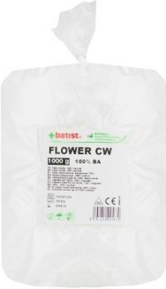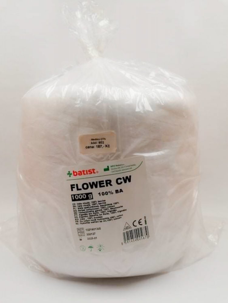Obvazová vata Flower je vyrobena ze 100% bavlny. Je měkká, kvalitně vyčesaná s příjemným omakem a zvýšenou savostí.