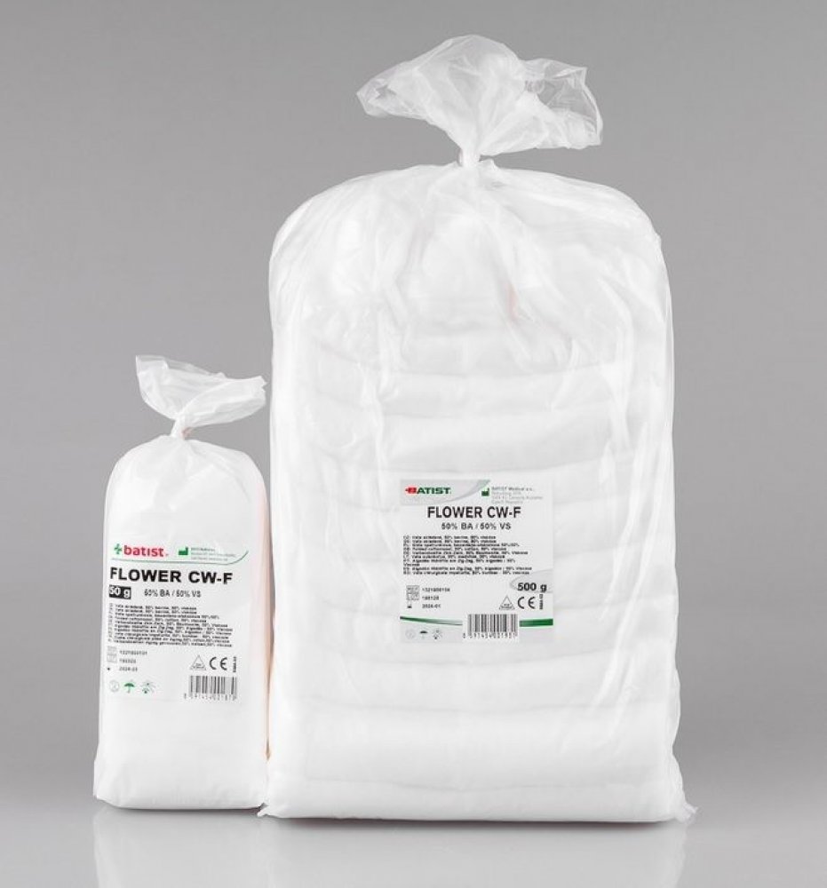 Obvazová vata skládaná je vyrobena ze směsi bavlna/viskóza. Vata obvazová BATIST je měkká, kvalitně vyčesaná s příjemným omakem a zvýšenou savostí. Výrobek je balen v PE sáčku.