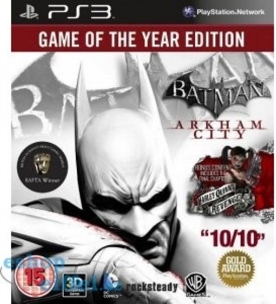 Game of the Year Edition obsahuje: Harley Quinn's Revenge Catwoman Pack Robin Bundle Pack Nightwing Bundle Pack Arkham City Skins Pack Challenge Map Pack Tentokrát to bude mít netopýří hrdina ze stáje DC Comics o poznání těžší. Ředitel věznice Arkham Quincy Sharp odtušil, že pod tíhou nových chovanců je potřeba mírně expandovat. A tak skoupil všechny pozemky chudinských čtvrtí v Gotham City, obehnal je vysokou zdí a dovnitř umístil nebezpečné vězně. Vzniklo Arkham City. Jak mu ale mohl takový čin projít? Inu, byl to právě on, kdo si neprávem připsal všechny zásluhy za vyřešení událostí z jedničky a v očích veřejnosti se stal hrdinou. A Batman tomu všemu jen z povzdálí přihlížel. Ledy se tak začnou znatelně hýbat teprve tehdy, až do věznice nastoupí Two-face. Ano přesně ten Harvey Dent z Temného rytíře, jemuž se ke konci snímku značně pokřivila tvář. No, tak tady je trochu jiný. Určitě ne takový dobrák. Dokonce natolik jiný, že ve snaze udělat si ve věznici jméno prohlásí, že unese Kočičí ženu a nechá jí popravit.Dostanete daleko víc volnosti. Byť se asi neprojdete po celém obrovitém Gothamu, ale jen po jeho – taktéž po čertech rozsáhlé – arkhamské čtvrti.Další novinou je rozdělení města Arkham na jednotlivé revíry. Každý ovládá jiný padouch s tlupou svých přívrženců. A nepotkáte ich málo, o tom svědčí dlouhý výčet jejich jmen. Kromě už zmíněného Two-Face a Hugo Strange narazíte i na Jokera – byť to s ním není zrovna valné, prý trpí nějakou tajemnou chorobou – a jeho věrnou Harley Quinn, objeví se Mr. Freeze, Riddler, Calendar Man, Zsaz, ale také Black Mash či Penguin. Tak vidíte. O zábavu se stará poměrně rozsáhlý ansámbl záporáků. Inovace se dotkne i soubojů. Není také žádným tajemstvím, že se Batmanovi už od začátků zpřístupní všechny jeho futuristické hračky. Tím myslím třeba kouřové bomby nebo kladku, které jste obdrželi až v průběhu minulého dílu. Zbrusu nový přístroj pak ponese jméno Broadcast Analyzer. Je to takový Pipboy 3000 v batmanovském kabátku. Umí se napíchnout na policejní vysílačku, přijímat zprávy od nepřátel a spoustu dalších užitečných věcí.