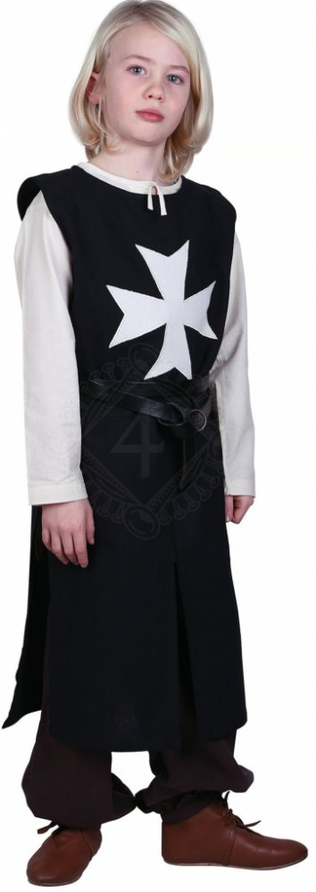 Dětský varkoč Maltézského řádu v barvě černá/přírodní Varkoč (také nazývaný jako surcot) se objevil ve 12. století a rytíři ji nosili přes brnění nebo kroužkové brnění. Chránilo nositele před slunečním žárem na bojišti a barvou a charakteristickým křížem dávala v bitevní vřavě najevo, kdo je nepřítel a kdo přítel. Mnoho křižáků nosilo varkoče, aby se identifikovali jako křižáci. Řád maltézských ry...