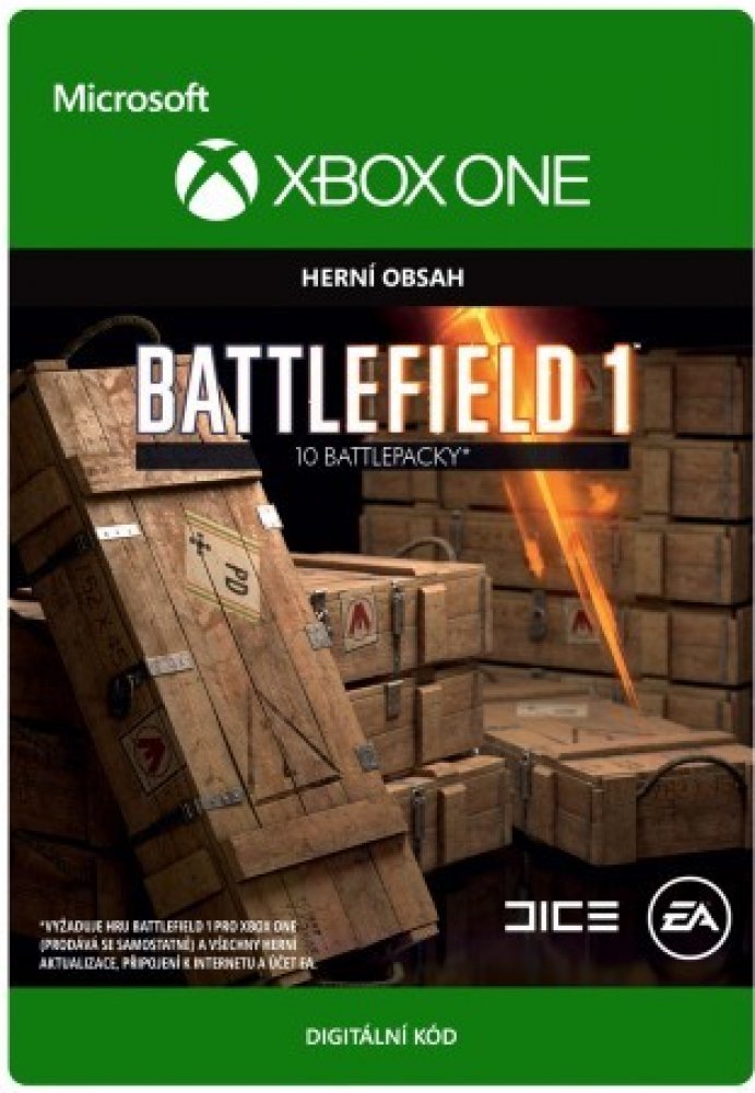 Jedná se o herní doplněk, který vyžaduje plnou hru Battlefield 1. V každém battlepacku po otevření najdete jeden skvělý zbraňový skin. Tyto skiny jsou rozdělené do tří kategorií podle vzácnosti – special (speciální), distinguished (mimořádný) a legendary (legendární). K domu můžete získat i vzácnou bonusovou položku – buď zkušenostní prémii nebo díl skládačky unikátní zbraně na blízko. Po nasbírání všech částí můžete zbraň složit a vzít si ji do boje. V pravidelných intervalech budeme měnit celkovou nabídku předmětů, ze které se potom čerpá konkrétní obsah battlepacků – a tyto aktualizace obsahu se ve hře nazývají revize (revisions). Jakmile do oběhu vypustíme novou revizi, doporučujeme zůstat ve hře, abyste viděli, co nového vás v battlepacích čeká. Před otevřením battlepacku uvidíte seznam skinů, které aktuální revize obsahuje, a budete tak mít přehled o tom, jestli se ve stávající nabídce předmětů nachází i vaše oblíbená zbraň. Jak je to se systémem scraps (dílů)? Funguje takto: když získáte zbraňový vzor nebo bonusový předmět, který se vám nehodí, můžete ho rozebrat na díly. Díly tvoří speciální herní měnu, za kterou můžete kupovat nové battlepacky. Jak už bylo řečeno, kvalitní a prvotřídní variantu battlepacků můžete nakoupit právě a jedině za díly. Zároveň platí, že si díly můžete šetřit na novou revizi, kde možná najdete oblíbený, dlouho hledaný skin. Balení obsahuje 10 balíčků. Zažij svět zmítaný válkou Bojuj v rozlehlých válečných zónách a drsných bitvách – ať už to budou stísněné městské přestřelky v obléhaném francouzském městě, otevřená válka v italských Alpách nebo divoké nájezdy v arabských pouštích. Zúčastni se obří invaze buď jako pěchota, nebo v kabině vozidel na zemi, ve vodě i ve vzduchu – čeká tě vše od tanků a motocyklů po dvouplošníky a obří bitevní lodě.Prozkoumávej svět zmítaný válkou v dobrodružné kampani, nebo se připoj do napínavých multiplayerových bitev pro až 64 hráčů online, kde budeš muset svůj herní styl a taktické schopnosti přizpůsobovat neustále se měnící situaci ve zničitelném a dynamickém prostředí. Produkt je určen pouze pro české Microsoft / Xbox účty. Detaily aktivace vám budou zaslány e-mailem.