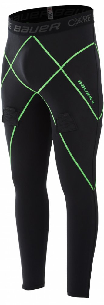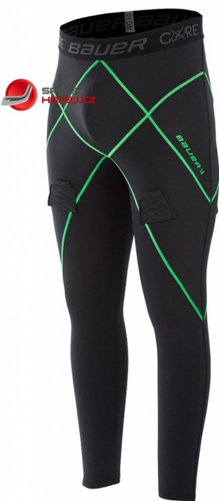 Speciální kompresní kalhoty Bauer Core 1 s podpůrným systémem Sling a nastavením ponožek na suchý zip, které nab...