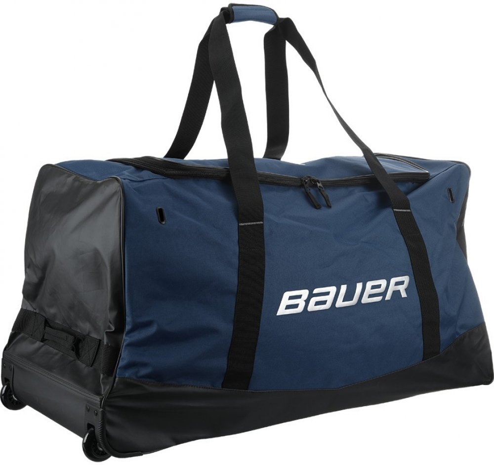 Juniorská hokejová taška na kolečkách Bauer CORE WHEELED BAG JR vám usnadní cestu na zápas i trénink. Šetřete síly a naložte veškerou tíhu na kolečka, která si poradí i na mírně nerovném povrchu. Taška poskytne prostor pro výstroj v jednom hlavním oddílu, do kterého se snadno dostanete. Ochranný potah na dně tašky zajistí její dlouhou výdrž.