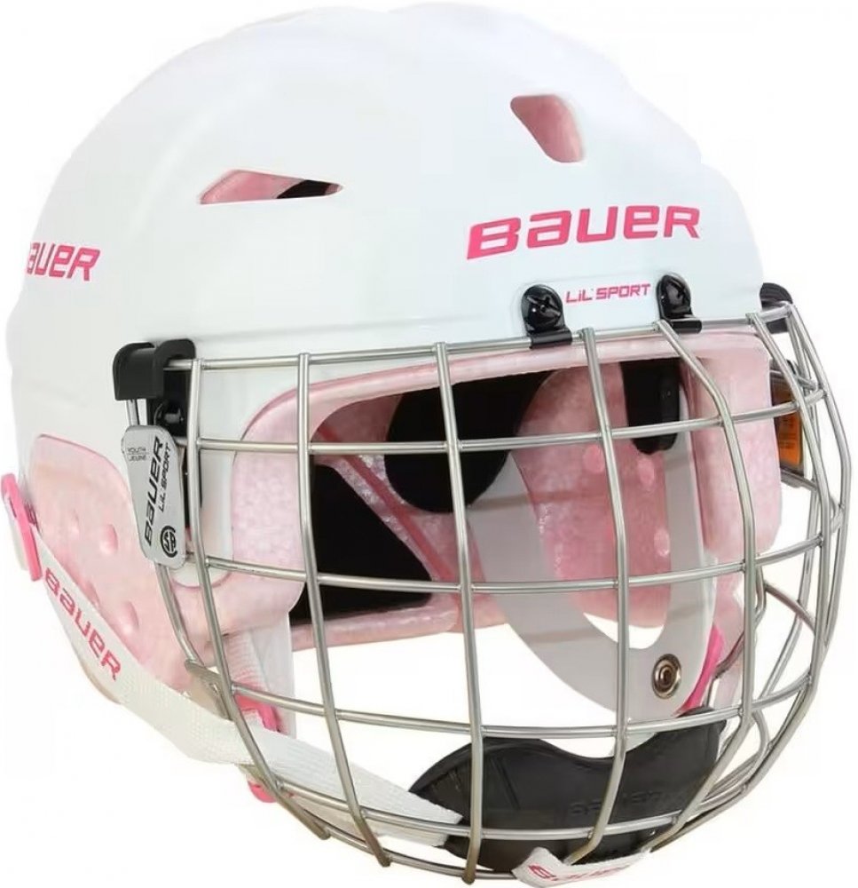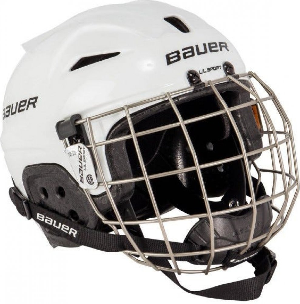 Dětská hokejová helma s mřížkou a chrániči uší Bauer LIL' SPORT COMBO pro začínající hokejisty. Povedená a především velmi bezpečná hokejová helma pro nejmenší.