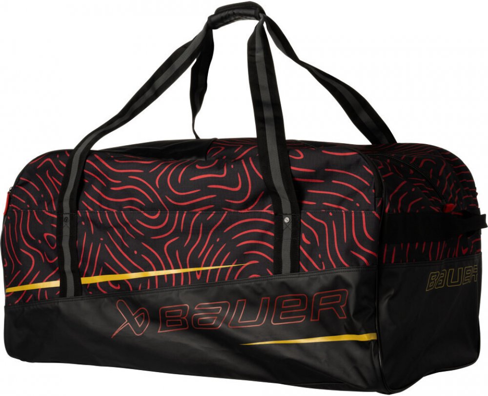Hokejová taška - Junior • Objem: 151 l • Barva: červená • Materiál: 600D polyester • Způsob uchycení: 2 popruhy • Dlouhý popruh na nošení: ne • Identifikační štítek: ano • Ventilace: ano