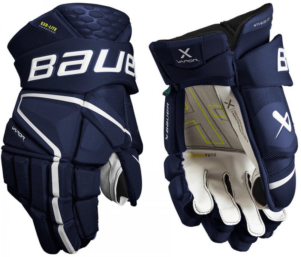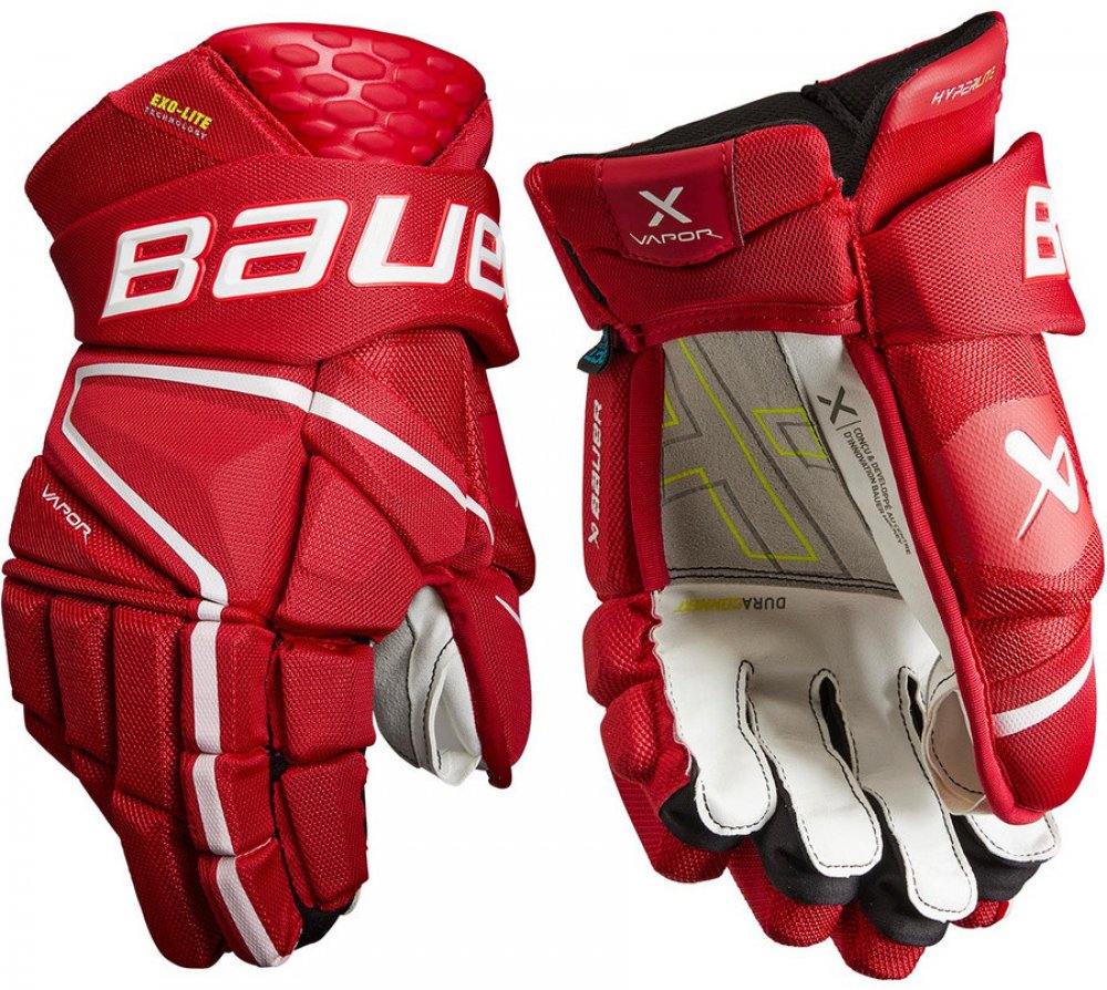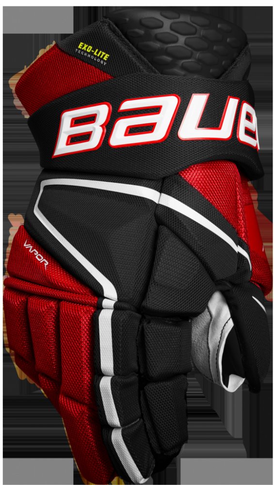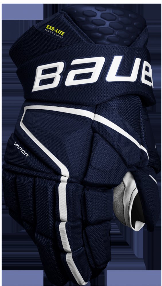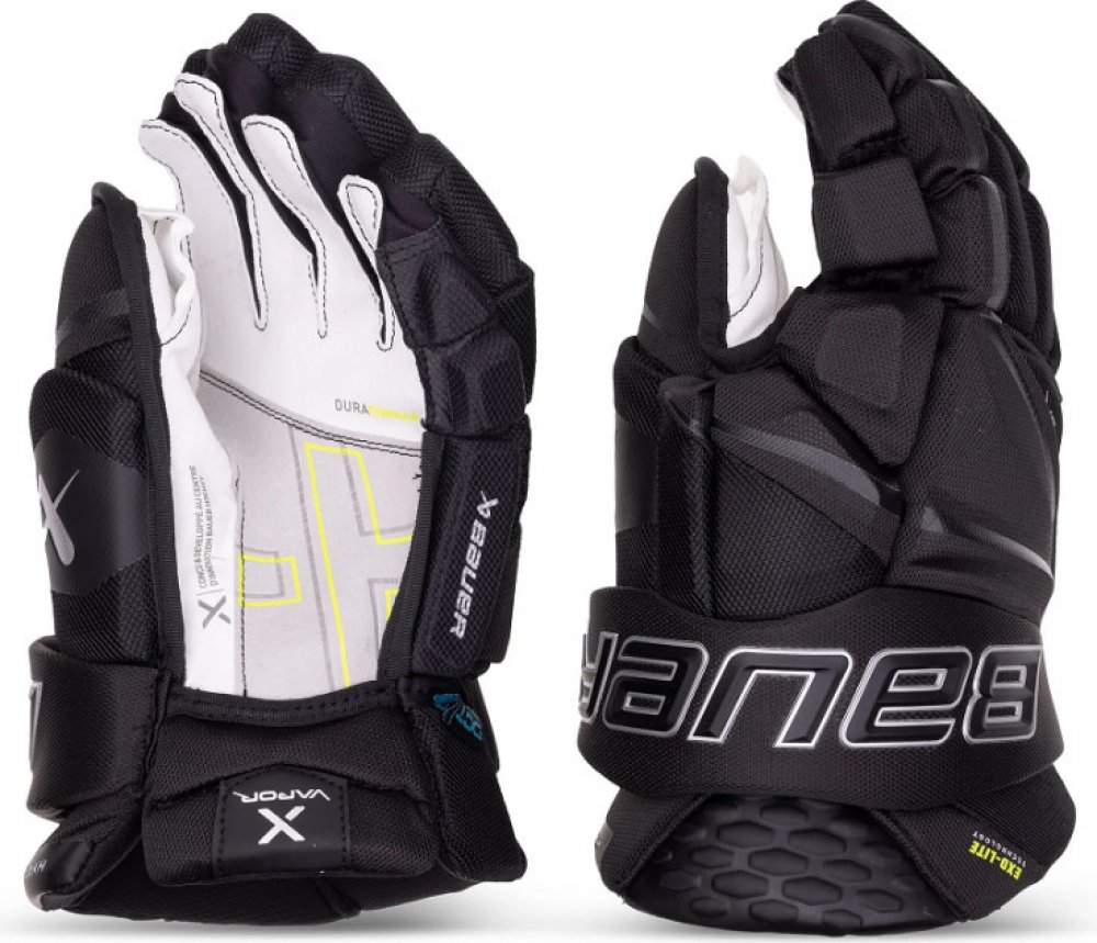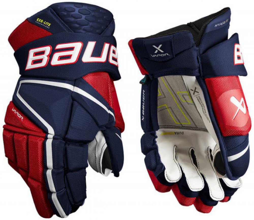 Elitní model řady Vapor pro sezónu 2022. Elitní model řady Vapor pro sezónu 2022. O ochranu rukavic Bauer Vapor Hyperlite se stará pěnový materiál DC TECH na hřbetu ruky a v kombinaci s lisovanou deskou SHOCKLITE zlepšuje ochranu až o 25%. Navzdory tomu je rukavice extrémně lehká. Kotva tabulky velikostí Nová dlaň DURACONNEKT je o cca 30% odolnější a nabízí lepší cit než předchozí model. Vložka NANOSENSE v prstech zajišťuje měkký pocit. Vnitřní materiál THERMOCORE Zero snižuje zápach potu s chladivým efektem na ruce. Prsty jsou třídílné s pěnou s trojitou hustotou, palec je dvoudílný.