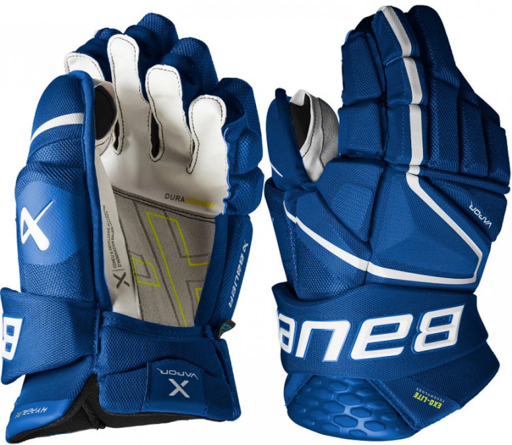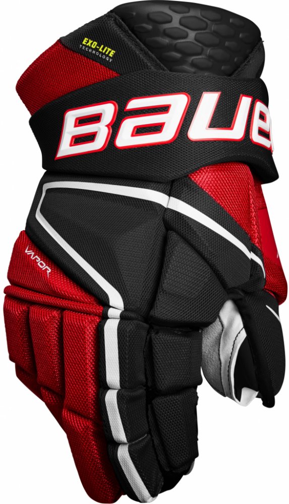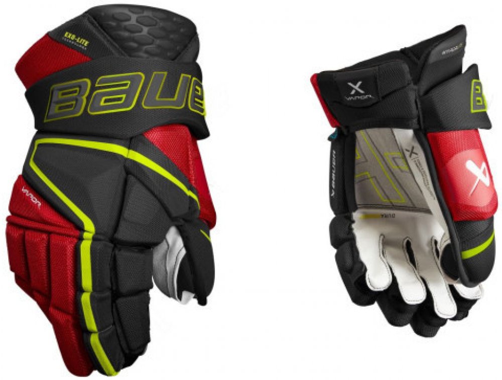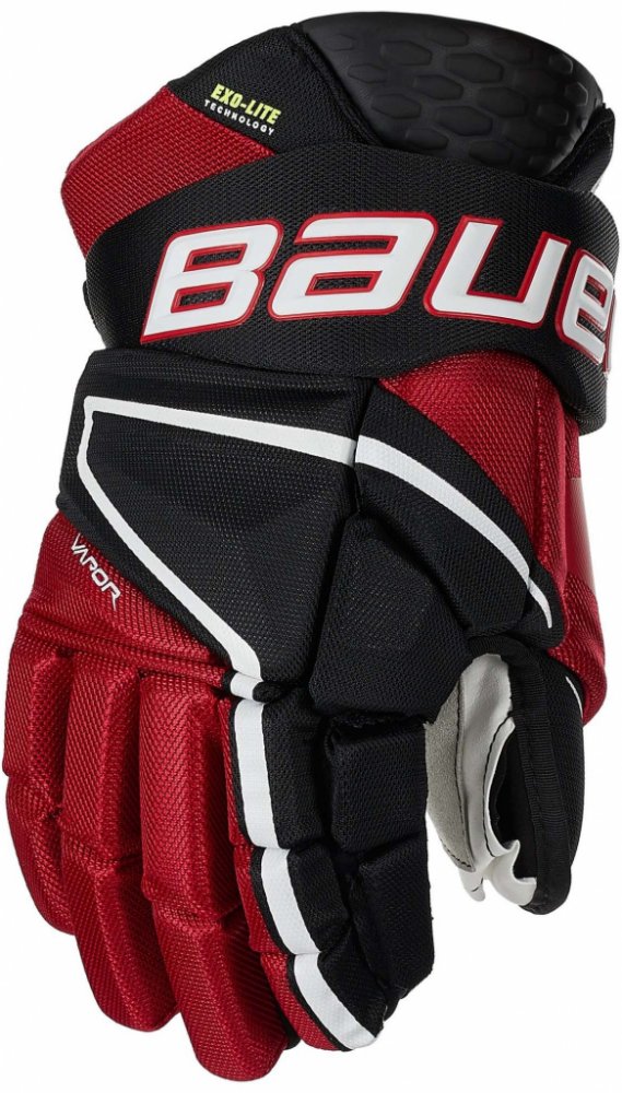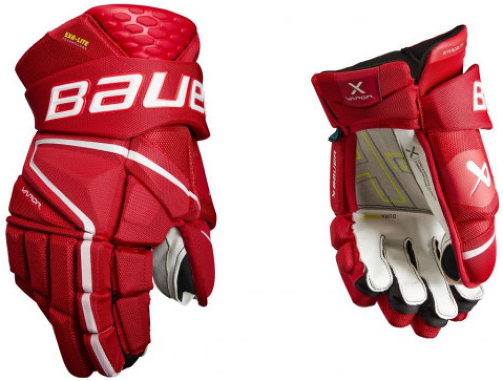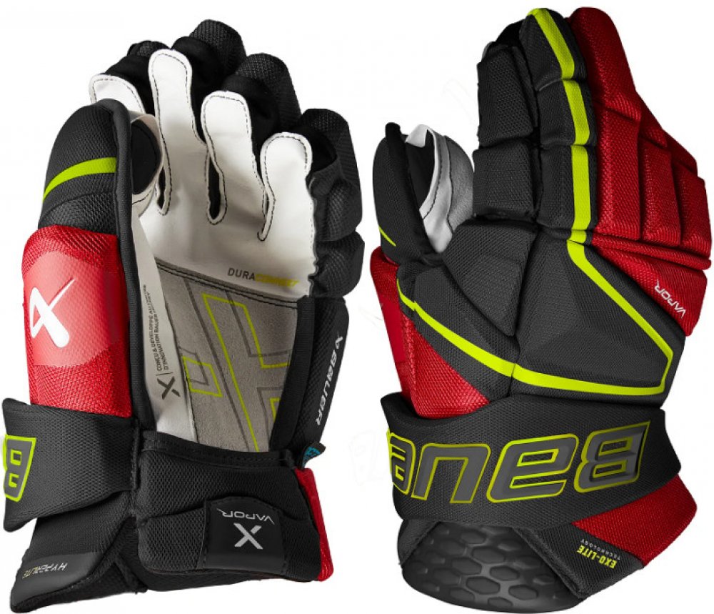 Elitní model řady Vapor pro sezónu 2022. Elitní model řady Vapor pro sezónu 2022. O ochranu rukavic Bauer Vapor Hyperlite se stará pěnový materiál DC TECH na hřbetu ruky a v kombinaci s lisovanou deskou SHOCKLITE zlepšuje ochranu až o 25%. Navzdory tomu je rukavice extrémně lehká. Kotva tabulky velikostí Nová dlaň DURACONNEKT je o cca 30% odolnější a nabízí lepší cit než předchozí model. Vložka NANOSENSE v prstech zajišťuje měkký pocit. Vnitřní materiál THERMOCORE Zero snižuje zápach potu s chladivým efektem na ruce. Prsty jsou třídílné s pěnou s trojitou hustotou, palec je dvoudílný.