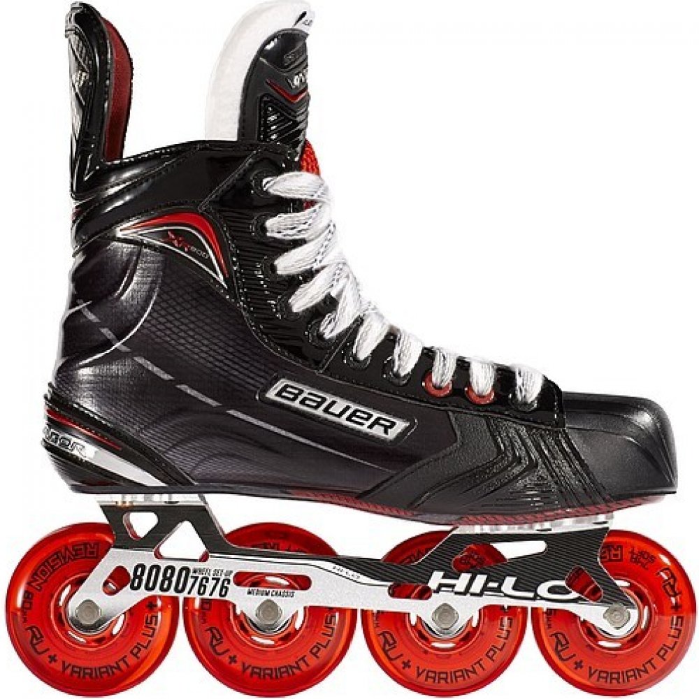 Průměr předních koleček je 76mm a zadních 80mm - tvrdost je 74A . Inline brusle jsou určeny především pro výkonnostní inline hokej. Díky technologii X-Rib Vám brusle dodají jistotu a potřebnou oporu při všech manévrech při hře i rekreaci. Brusle Vás dokonale ochrání proti nárazu i střelám kotouče při hraní inline hokeje. Brusle mají patentovaný rám Hi-Lo od společnosti Bauer, takže Vás nikd...
