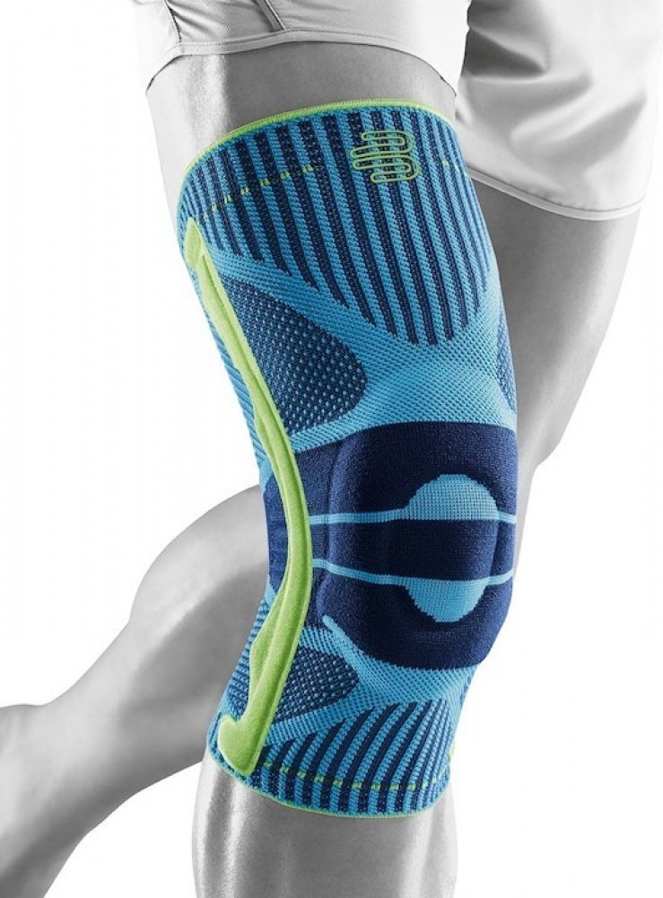 Bandáž obsahuje funkční prvky jako jsou ortopedická stélka ze silikonu obklopující čéšku s dvěma tlakovými body na distální části a dvěma bočními lemelami ve výšce menisku. Kompresní pletenina s vysokou elasticitou je prodyšná a během sportovních výkonů efektivně odvádí vlhkost.