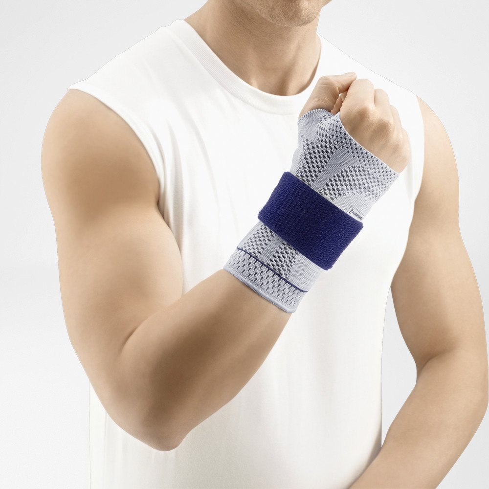 ManuTrain je anatomicky tkaná dvoutažná bandáž na stabilizaci zápěstí. Anatomicky tvarovaná výztuha je tepelně tvarovatelná a tím individuálně přizpůsobitelná, zabezpečuje ideální držení zápěstí a omezuje jeho pohyb. Přiložená páska se suchým zipem slouží k fixaci dlahy a současně stabilizuje zápěstí. Vlastnosti ManuTrain je aktivní bandáž ke stabilizaci zápěstního kloubu. Komfortní zóna mezi palcem a ukazováčkem pro uchopení předmětů, chránící před podrážděním kůže. Nový koncept pleteniny: obzvláště elastický, prodyšný a odvádějící vlhkost pro účinnou kompresi vynikající komfort při nošení. Jedná se o anatomicky tvarovanou, dvoutahovou bandáž. Funkční nastavení ruky podle dané indikace díky adaptabilní dlaze uvnitř bandáže. Dodatečná upínací páska umožňuje fixaci vnitřní dlahy ruky. Různé provedení pro pravou a levou stranu Natahovací pomůcka přiložená Video: Vyrobeno v Německu!