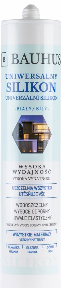 Univerzální silikon Bauhus je trvanlivý, pružný těsnící materiál, který se vyznačuje vodotěsností.