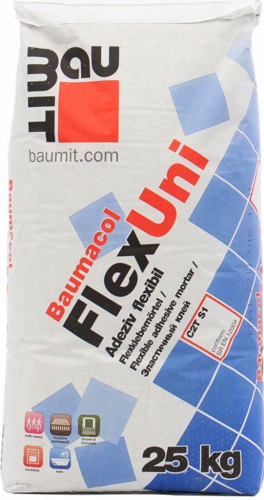 Vysoce kvalitní flexibilní mrazuvzdorná lepící směs určená k lepení keramických dlaždic, skleněných obkladů, dlažby, mozaiky a kamene na sádrokartonové desky, beton, lehčený beton, plynosilikáty na dřevotřískové a dřevovláknité desky. Je možno jej použít k lepení dlažby na podlahu s tepelným vytápěním.