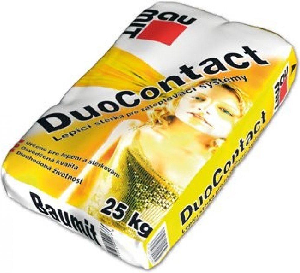 Průmyslově vyráběná minerální směs Baumit DuoContact na bázi cementu lepicí a stěrková malta pro použití v interiéru i exteriéru, zejména pro lepení tepelně izolačních fasádních desek EPS 70F a minerální vaty na podklad, pro provádění armovací a vyrovnávací stěrky s vložením sklotextilní výztužné síťoviny Baumit DuoTex v tepelně izolačním systému Baumit Duo. Výhodou lepícího a stěrkového tmelu je dobrá zpracovatelnost, přídržnost k podkladu a vodoodpudivost. Použití lepidla Baumit DuoContact v praxi: Podklad před použitím lepící a stěrkové hmoty DuoContact musí vyhovovat platným normám, musí být pevný, bez uvolňujících se částic, zbavený prachu, zbytků odformovacích prostředků a solných výkvětů. Musí být dostatečně drsný, suchý a rovnoměrně nasákavý. Povrch nesmí být vodoodpudivý. Lepící a stěrkovou hmotu nasypeme do cca 5-6 l záměsové vody na 25 kg suché směsi a smísíme pomalu běžným mísidlem. Po promíchání je dobré nechat lepidlo cca. 5min. odstát a poté se ještě jednou krátce promíchá. Baumit DuoContact nanášíme po celém obvodu fasádních desek a na tři místa uvnitř její plochy. U ideálně rovných podkladů lze nanášet přímo na podklad ručním způsobem ozubenou stěrkou po celé ploše podkladu. Do takto připravené stěrky následně zatlačíme izolační fasádní desky. V případě vytváření základní vrstvy vkládáme do předem nanesené vrstvy lepícího tmelu armovací tkaninu Baumit DuoTex, kterou vtláčíme dovnitř zahlazením nerezovým hladítkem směrem do středu ke krajům s přesahem min. 10 cm. Práce spojené s aplikací se nesmí provádět pod + 5 °C (vzduch i konstrukce), nesmí se rovněž provádět práce na přímém slunci, během silného větru, deště a očekávaných mrazech . Nedoporučuje se přidávat dodatečné přísady, plniva a pojiva. Zrnitost: 1 mm Součinitel tepelné vodivosti (λ): 0,83 W/mKFaktor difúzního odporu (μ): cca 10 spotřeba: cca 3-4kg/m2 pro lepení, stěrkování EPS-F cca 3-6 kg/m2 pro lepení MW, stěrkování MW, vyrovnávací vrstvu MW Nákup Lepící tmel Baumit DuoContact dodáváme po ucelených 25 kg baleních nebo po celých paletách. Jedna paleta obsahuje 54 balení (1350 kg) lepidla Baumit DuoContact. Doprava Lepící tmel Baumit DuoContact zavážíme i po jednotlivých baleních. Doporučujeme nakoupit Baumit DuoContact společně s fasádním polystyrenem nebo jiným fasádním příslušenstvím pro jednotnou dopravu a tím i menší cenu za dopravné. V případě objednání samostatné palety je účtováno dopravné 800 kč po celé ČR. V případě větší objednávky nad 42 bal. je dopravné počítáno individuálně podle místa dodání. V případě nejasností volejte naši infolinku 773 687 037.