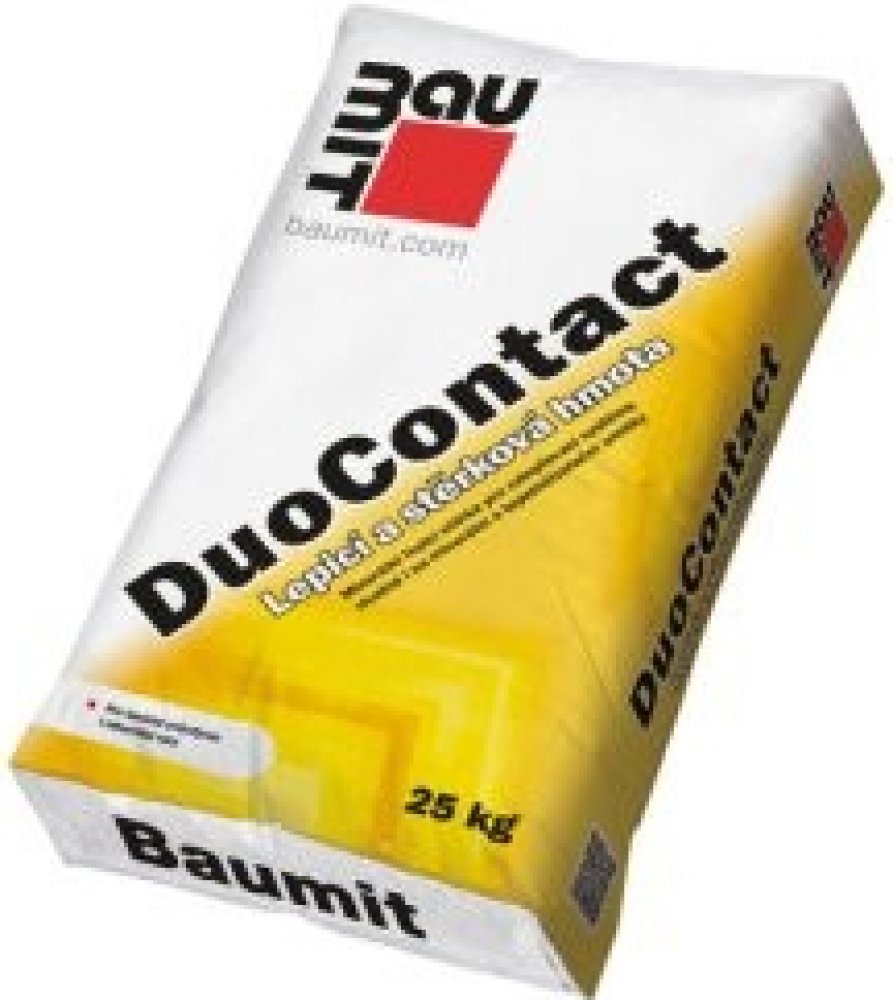 Průmyslově vyráběná minerální směs Baumit DuoContact na bázi cementu lepicí a stěrková malta pro použití v interiéru i exteriéru, zejména pro lepení tepelně izolačních fasádních desek EPS 70F a minerální vaty na podklad, pro provádění armovací a vyrovnávací stěrky s vložením sklotextilní výztužné síťoviny Baumit DuoTex v tepelně izolačním systému Baumit Duo. Výhodou lepícího a stěrkového tmelu j...
