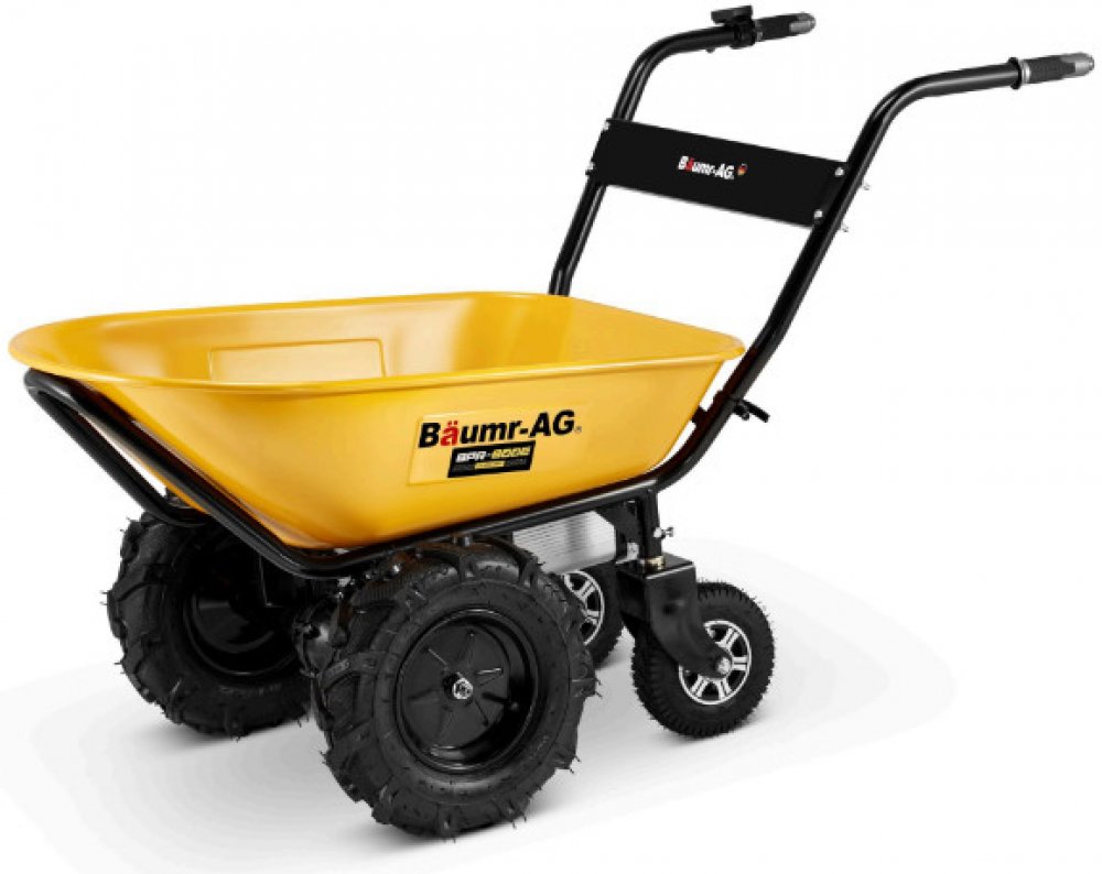 ● Model: Bäumr-AG BPR-800E● Napájení: Li-ion baterie 40 V/6 Ah● Doba provozu: až 3 hodiny● Doba nabíjení (0 % až 100 %): 3 hodiny● Motor: Elektrický bezkartáčový indukční● Pohon: Přední pohon na dvojitou osu● Přední pneumatiky: 16 x 5 palců, hluboký vzorek V, pneumatiky● Hmotnost: 53 kg● Brzdy: Elektronické● Maximální nosnost: 260 kg na rovině● Kapacita kontejneru: 100 l● Třída IP: 54● Maximální stoupání: 12° (při zatížení 200 kg)● Maximální rychlost vpřed: 6 km/h● Maximální rychlost vzad: 2 km/h● Materiál: Práškově lakovaná ocel