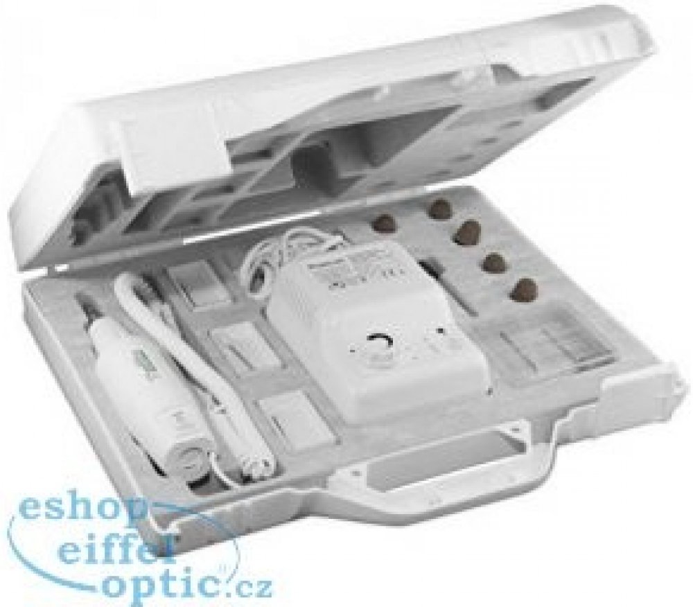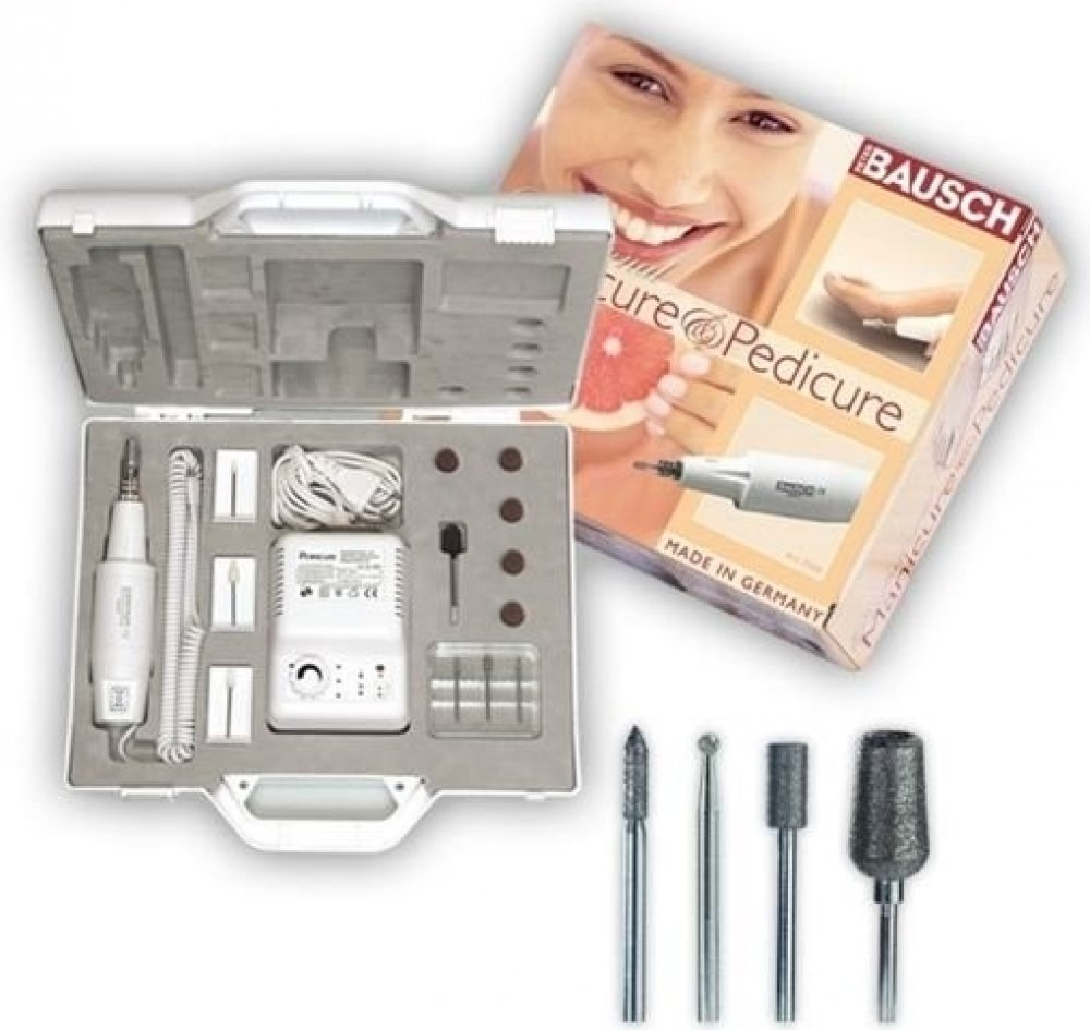Bausch 0360 bruska na manikúru a pedikúru - speciální sada na pedikúru a manikúru s výkonným (120W) a tichým elektromotorem s otáčkami od 500 - 13 500 otáček za minutu! Sada obsahuje kvalitní, pevný přístroj s 13 ks příslušenství. Přístroj je vyráběný německou společností Peter Bausch GmbH & Co. KG, která má mnohaletou zkušenost s výrobou s těchto přístrojů! Průměr stopky fréz 2,35 mm - standart.