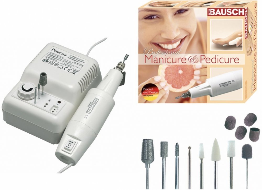 Bausch 0360 bruska na manikúru a pedikúru - speciální sada na pedikúru a manikúru s výkonným (120W) a tichým elektromotorem s otáčkami od 500 - 13 500 otáček za minutu! Sada obsahuje kvalitní, pevný přístroj s 13 ks příslušenství. Přístroj je vyráběný německou společností Peter Bausch GmbH & Co. KG, která má mnohale...