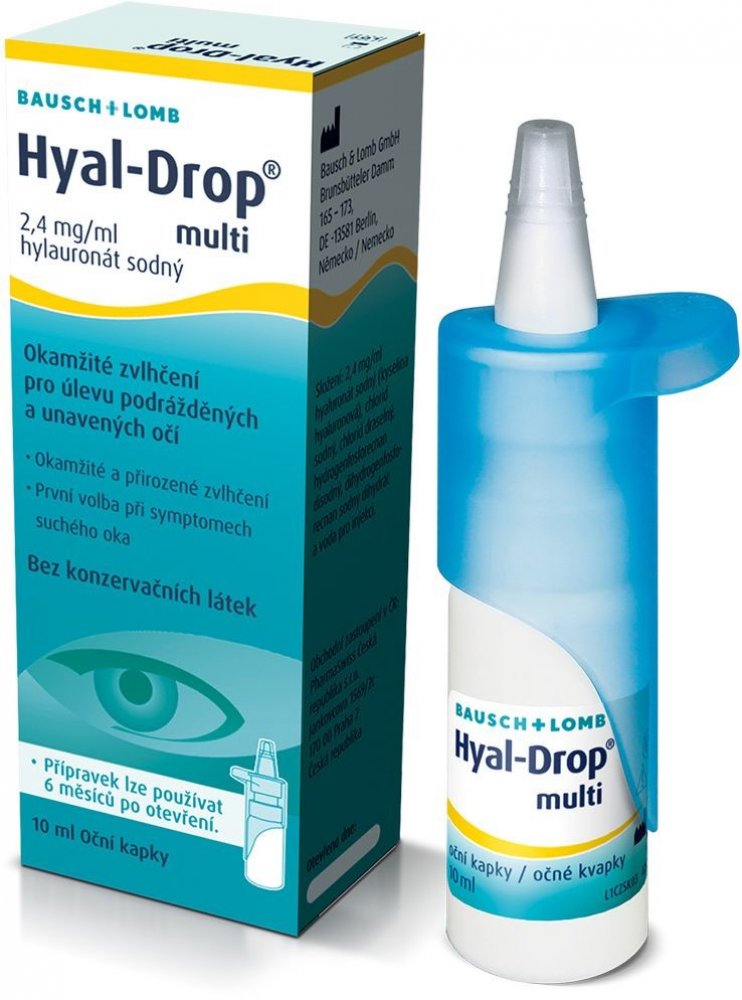Hyal-Drop multi kapky jsou díky přírodnímu původu kyseliny hyaluronové a absenci konzervačních látek natolik šetrné, že mohou být používané tak často, jak je potřeba. Díky patentovému uzávěru s opěrkou na palec se pohodlně dávkují. Kapky Hyal-Drop je třeba spotřebovat do 3 měsíců po otevření.