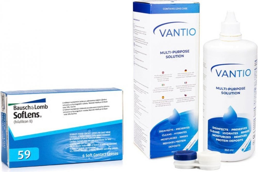 Měsíční kontaktní čočky SofLens 59 nabízíme ve zvýhodněném balíčku s roztokem Vantio Multi-Purpose 360 ml. Kontaktní čočky SofLens 59 od společnosti Bausch & Lomb patří mezi oblíbené a osvědčené značky kontaktních čoček a pro snadnou manipulaci je ocení zvláště prvnonositelé. Jsou určené pro denní nošení s měsíční výměnou. Čočky SofLens 59 jsou vyrobeny z materiálu odolného vůči proteinům, který je spojením špičkové výkonnosti, pohodlí a ostrého vidění. Materiál Hilafilcon B obsahuje vysoký obsah vody a tím zvyšuje odolnost proti ukládání deposit, je tak umožněno pohodlné každodenní nošení. Vantio Multi-Purpose patří mezi nejnovější univerzální roztoky pro kompletní péči o všechny druhy kontaktních čoček a to včetně silikon-hydrogelových. Svým uživatelům nabízí optimální poměr kvality a ceny, díky čemuž se řadí mezi velmi populární roztoky na trhu. Víceúčelový roztok Vantio Multi-Purpose odstraňuje z čoček bílkovinné usazeniny, dezinfikuje, zvlhčuje a je určen také pro oplachování a uchovávání kontaktních čoček. Vyrábí se v Itálii stejně jako jeden z nejprodávanějších roztoků v našem eshopu Solunate Multi-Purpose. Vantio Multi-Purpose je skvělou alternativou pro jiné univerzální roztoky na kontaktní čočky, jako jsou například: All In One Light, Zero-Seven Refreshing, Options Multi, Solocare Aqua, Max Optifresh, Horien Ultra Comfort. Roztok Vantio Multi-Purpose můžete exkluzivně zakoupit v našem eshopu, nabízíme ho rovněž v ekonomicky výhodných balíčcích.