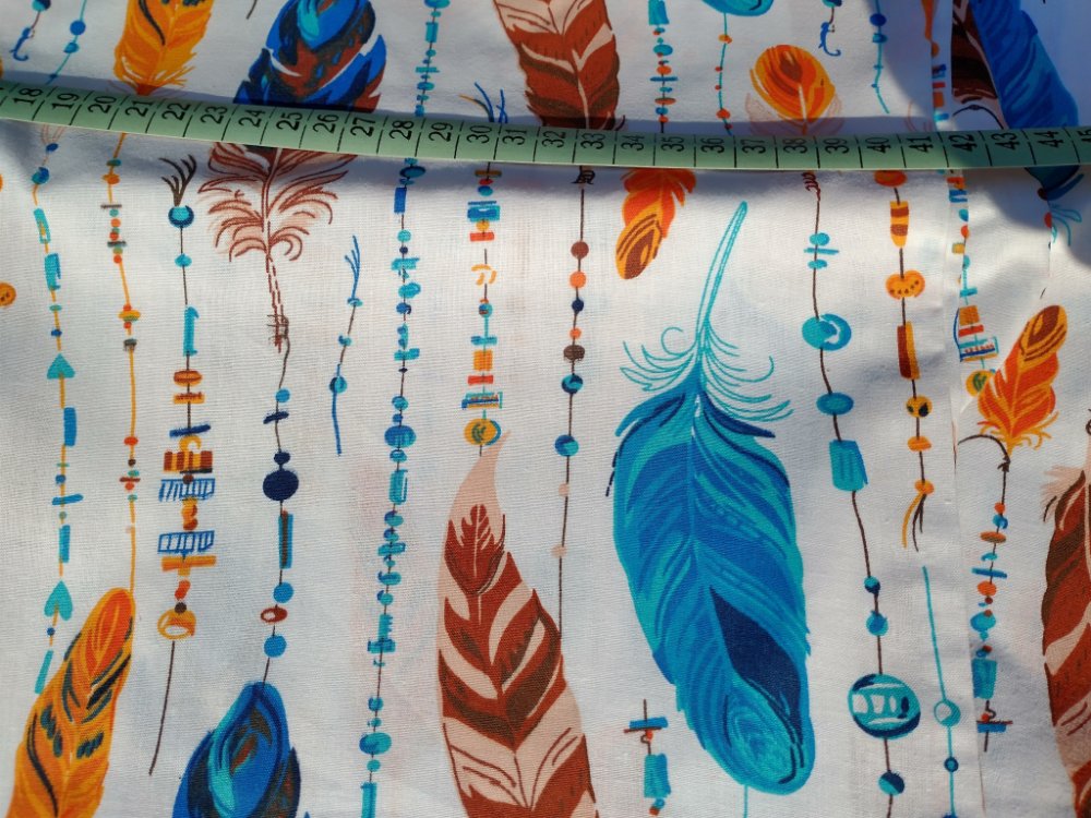 Bavlněná látka 100% bavlna metráž vzor Peříčka na bílé.