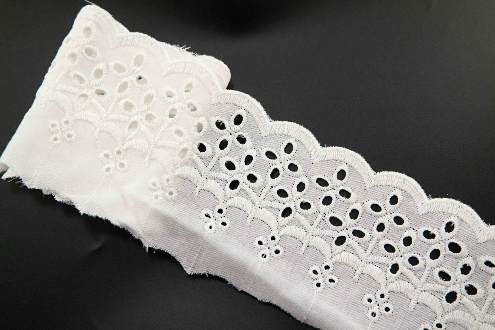 Bavlněná Madeira s motivem květin na stonku v lomené bílé barvě o šířce 7,5 cm je vysoce kvalitní a elegantní materiál vhodný pro výrobu oděvů, bytového textilu a dekorací. Precizní výšivka a detailní květinový vzor dodávají vašim projektům nadčasový a sofistikovaný vzhled. Tato Madeira je ideální pro vytvoření luxusních a tradičních kousků s moderním nádechem.