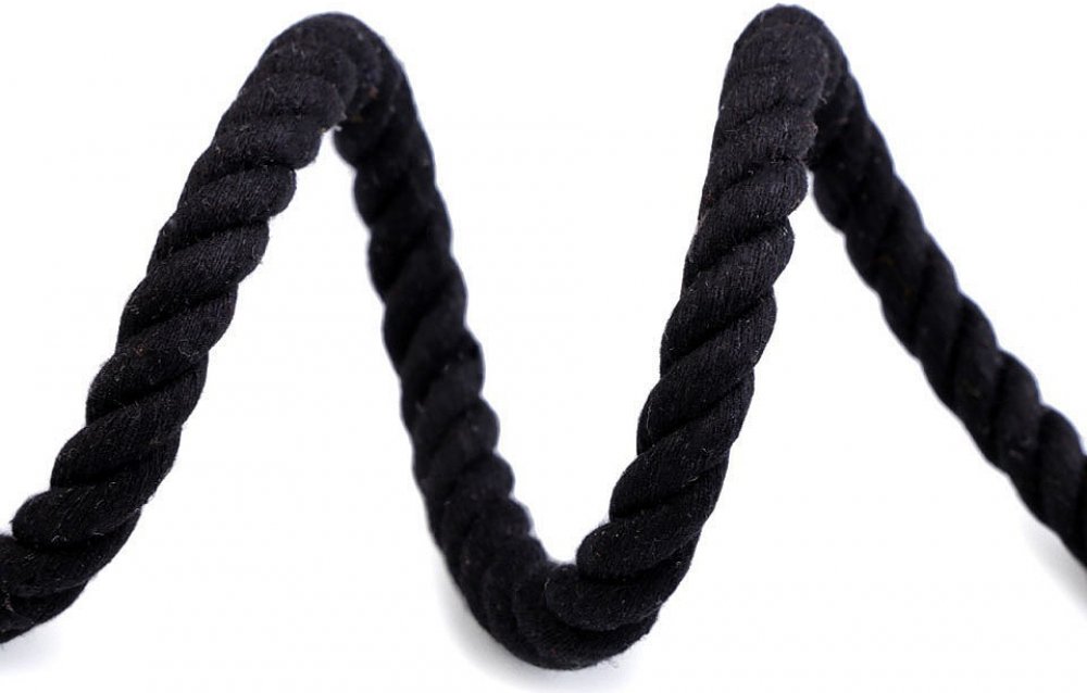 Bavlněná šňůra kroucená Ø10 mm tuhá, macrame, střední, 3 černá