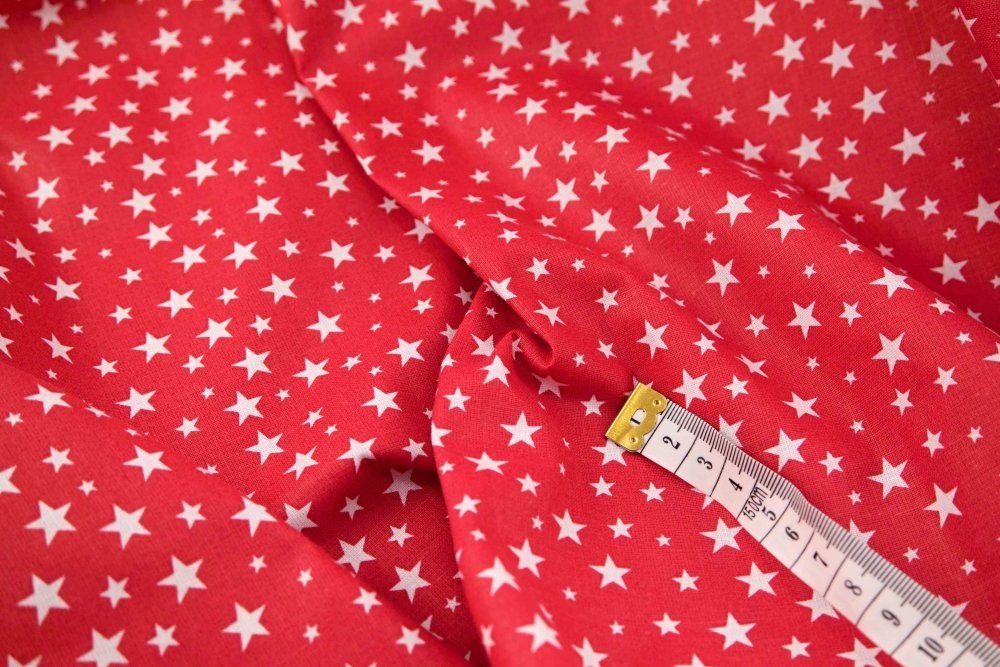 Bavlněné plátno - bílé hvězdičky na červeném podkladu - šíře 140 cm
