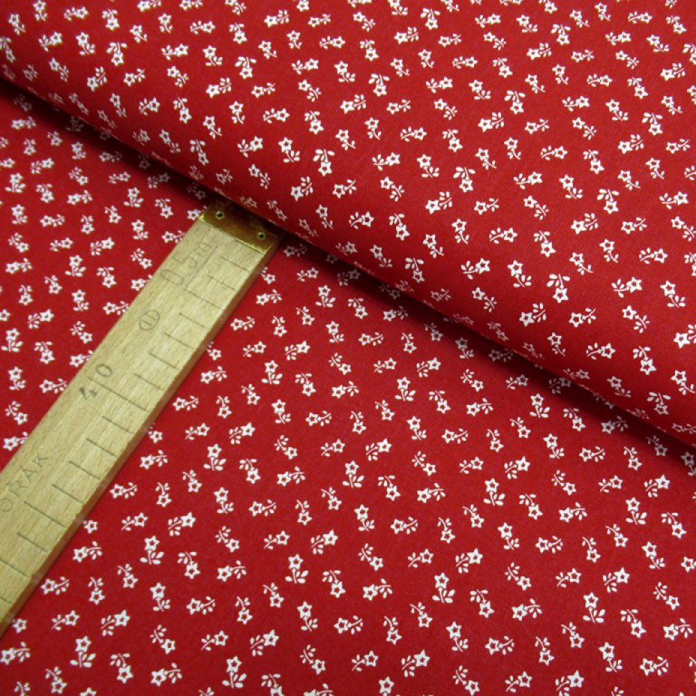 Bavlněné plátno - Květinky bílé na červené - šíře 150cm