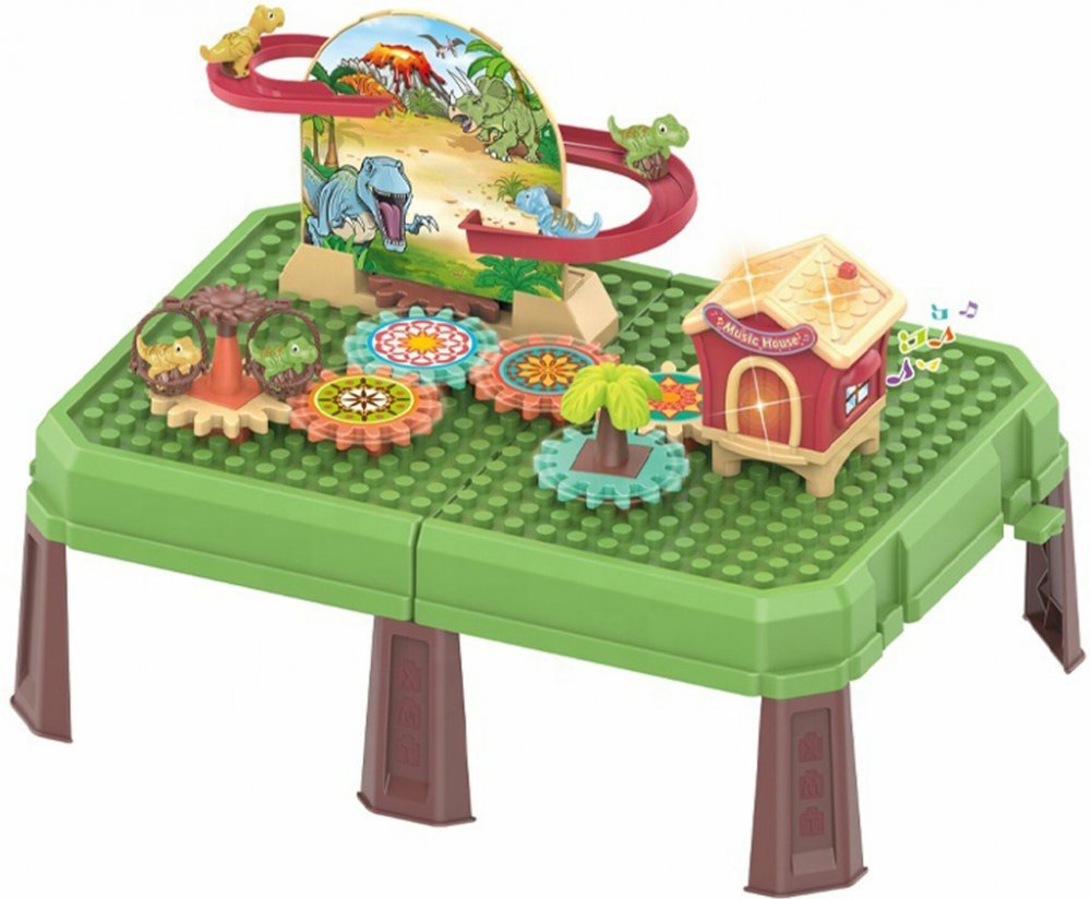 Hrací stoleček s dinosaury Bavytoy kombinuje motiv dinoparku se závodní dráhou, pohyblivými ozubenými koly a bohatým výběrem stavebních a dekorativních prvků. Děti si mohou ze 49 dílů vytvořit vlastní zábavní svět s figurkami dinosaurů, domečkem, stromy a dalšími doplňky. Multifunkční design 2v1 umožňuje složit stoleček do praktického přenosného kufříku, díky čemuž je ideální nejen na doma, ale i ...