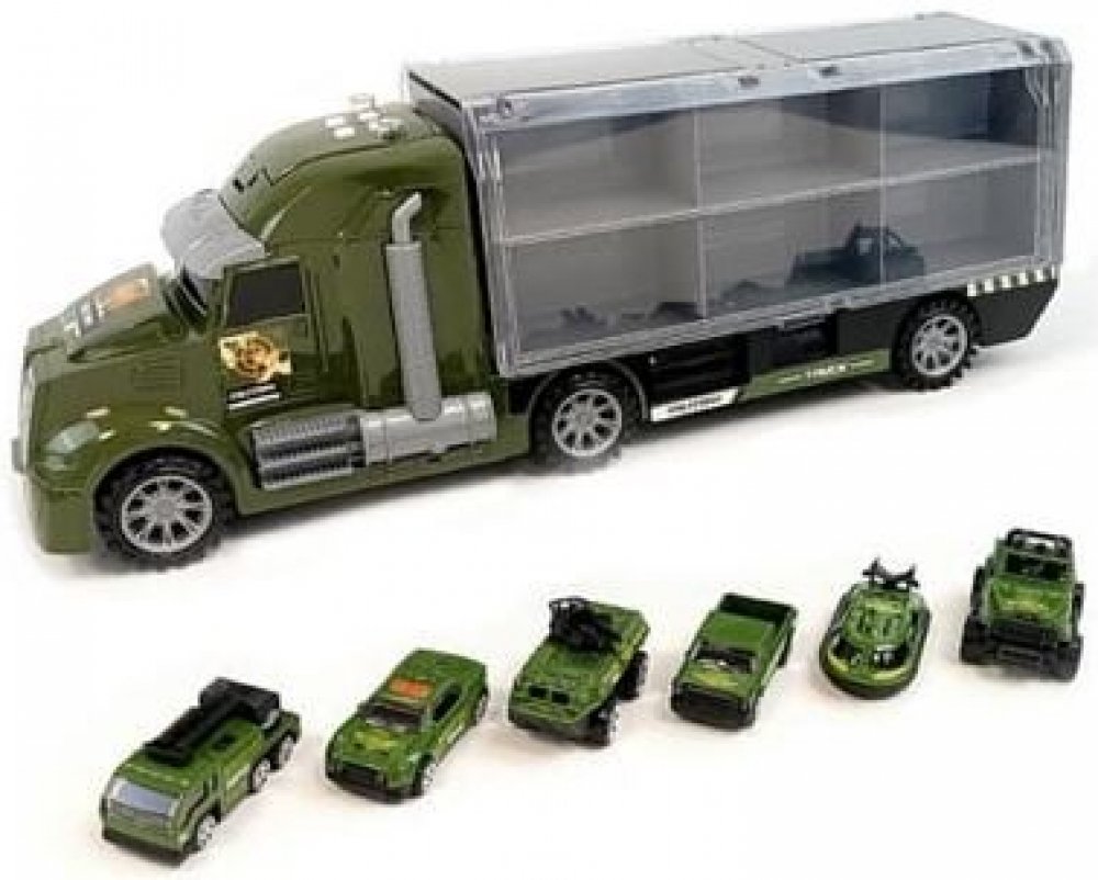 Rozveselte dětem den s tímto úžasným zeleným kamionem s vojenskými auty.