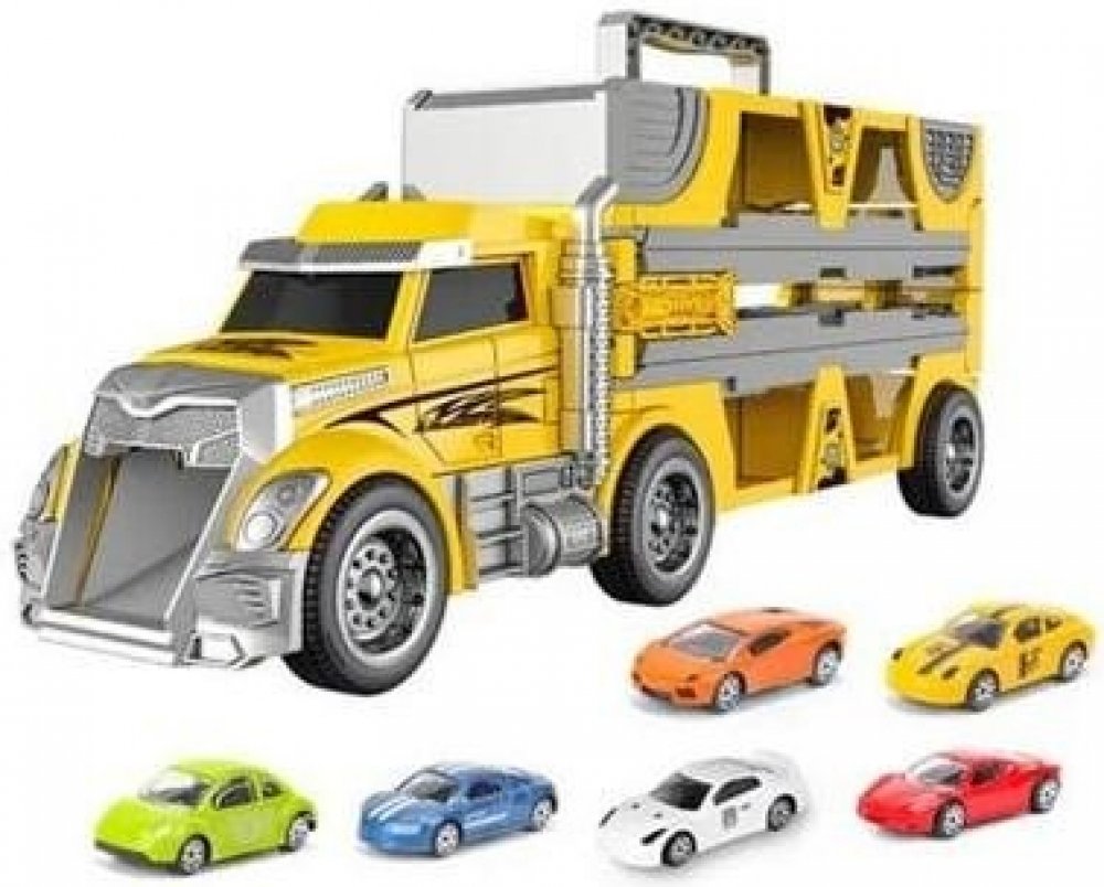 Kamion s dráhou a 6 auty Bavytoy je zárukou skvělé zábavy pro malé i větší milovníky aut. Žlutý kamion slouží nejen jako zábavná hračka, ale také jako místo pro uložení 6 kovových autíček, která jsou součástí balení. Především se však také dá transformovat do dvojité závodní dráhy o délce 145 cm, a tak si děti užijí nekonečnou porci zábavy a závodění. Dráhu lze snadno rozložit zatažením za praktic...
