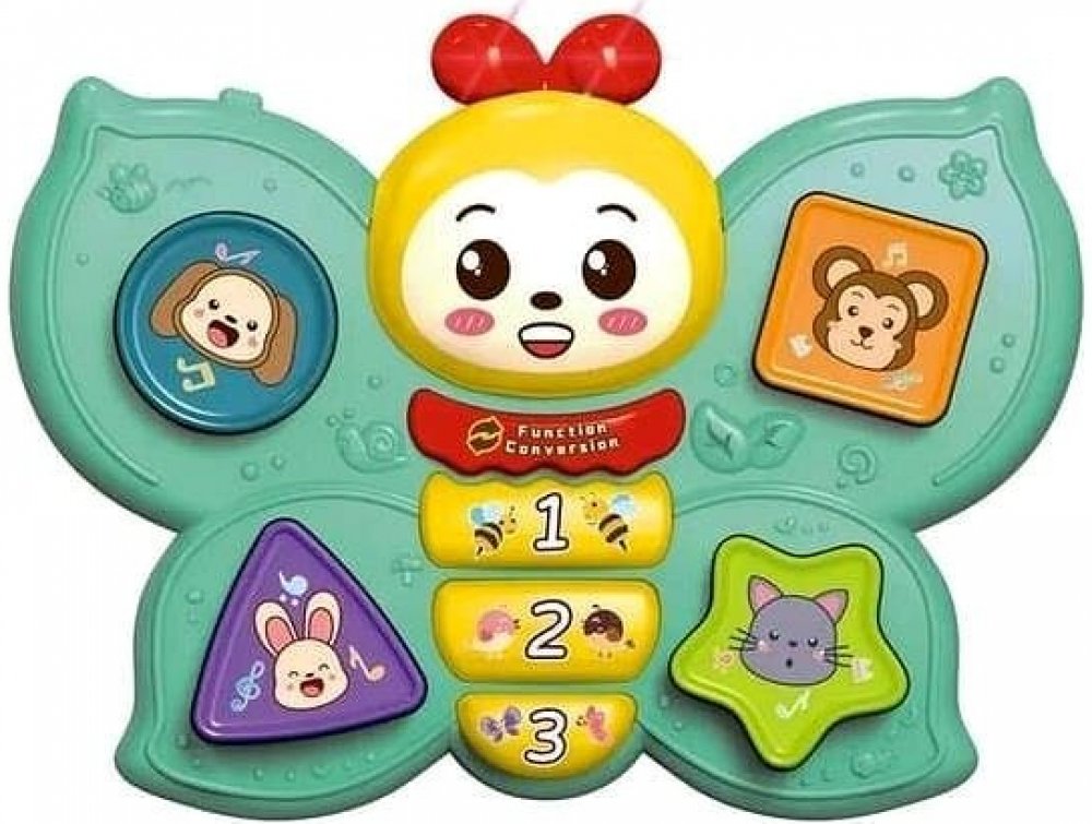 Motýlek už se těší, až si společně s vaším malým muzikantem zahraje. Piánko motýl Bavytoy obsahuje nejen tři tlačítka, kterými se aktivují zvuky zvířátek, hudba a rytmy, ale také čtyři vkládačky různých tvarů a barev se zvířátky. Dítko si tak nejen poslechne pěknou melodii, ale také rozvíjí svou jemnou motoriku, koordinaci ruka-oko a naučí se rozeznávat barvy a tvary. Určitě ho také potěší, že mot...