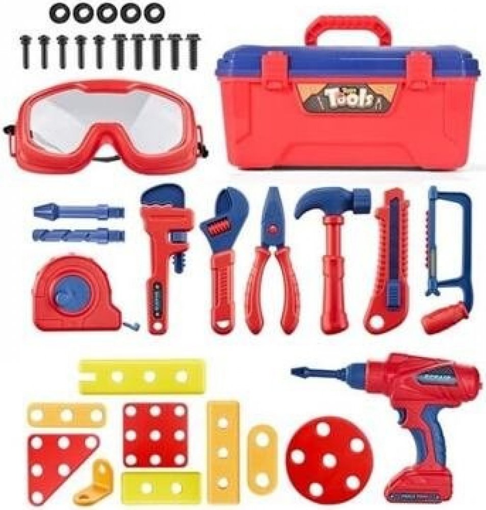 Plastové nástroje určené pro děti jsou hračky, které senzačně rozvíjejí prostorové povědomí, učí logickému myšlení a podněcují kreativitu a představivost. Sada takových hraček vám umožní i společnou práci v garáži nebo na zahradě, kde každý může používat vzájemně přizpůsobené nářadí. Každý z nástrojů obsažených v sadě má navzdory svému skutečnému vzhledu bezpečný tvar, který je zodpovědný za pohodlí a snadné použití. Hrací nástroje jsou svou velikostí přizpůsobeny rukám malých dětí, díky čemuž je hraní velmi zábavné. Obsah balení: úložný box s uchem k přenášení vrtačka s nástavci na baterie svinovací metr ochranné brýle francouzský klíč hasák kleště kladívko zalamovací nůž pilka šrouby a matice... Parametry: počet dílů: 38 rozměry: 32 x 20 x 15 cm materiál: plast bateri: 2x1,5V AA (nejsou součástí balení) doporučený věk: 3+ Produkt rozvíjí: kreativitu a představivost jemnou motoriku koordinaci oko-ruka hmatové a smyslové dovednosti sociální dovednosti Hračka podněcuje ke kreativnímu myšlení, rozvíjí motoriku a prostorový smysl a zapojuje dítě do zajímavé a kreativní hry, včetně týmové.