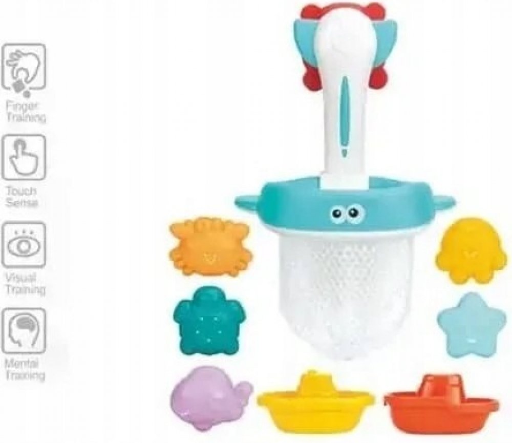 Perfektní vzdělávací hračka do vany. Zpříjemní koupel každému dítěti. Naučí jej rozlišovat barvy, tvary a rozvíjet koordinaci oko-ruka. Tato hračka je perfektním řešením pro rodiče, jejichž dítě se bojí vody a nemá rádo koupání. Zvířátka i koš plavou na vodě. Všechny hračky mají otvory, kterými voda vyteče. Pochytat všechna zvířátka není až tak snadné, jak by se na první pohled mohlo zdát. Sada obsahuje 5 zvířátek, 2 lodičky a sítko, které lze upevnit (na dlaždice nebo stěnu vany).