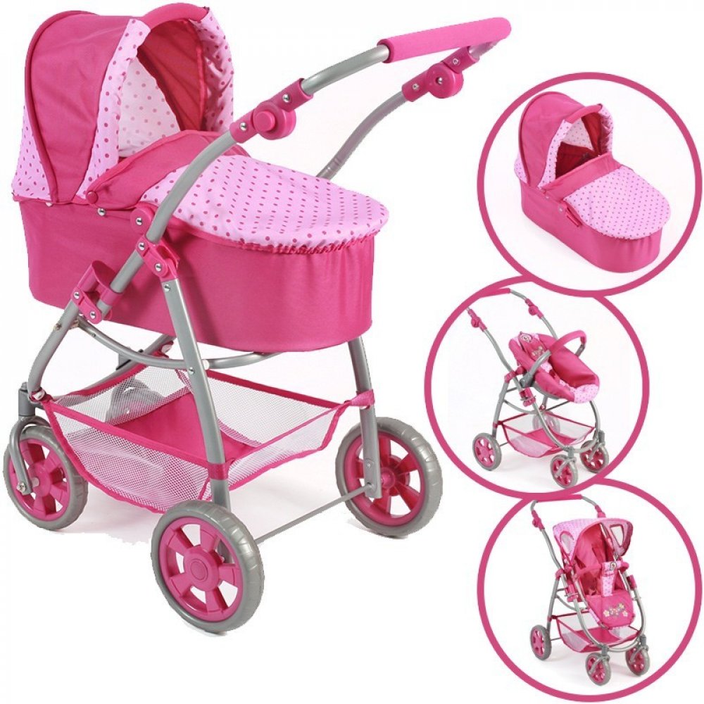 Kočárek pro panenku Bayer Chic 2000 Emotion 3v1 s autosedačkou 63731 Dots Pink