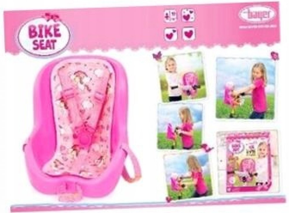 Tato moderní sedačka na kolo pro panenky je vhodná pro panenky do výšky 46 cm. Módní design sedáku a roztomilý motiv na čalounění mu dodávají mimořádně krásný vzhled. Díky nastavitelným bezpečnostním popruhům je vaše oblíbená panenka vždy chráněna před vypadnutím. Sedačku pro panenku lze připevnit ke kolu pomocí popruhů na přední straně nebo ji pomocí popruhů umístit na zadní stranu na nosič kola. Kromě toho lze sedátko použít také jako židličku, například pro krmení panenky, nebo jako autosedačku pro panenku pro skvělé hraní rolí.