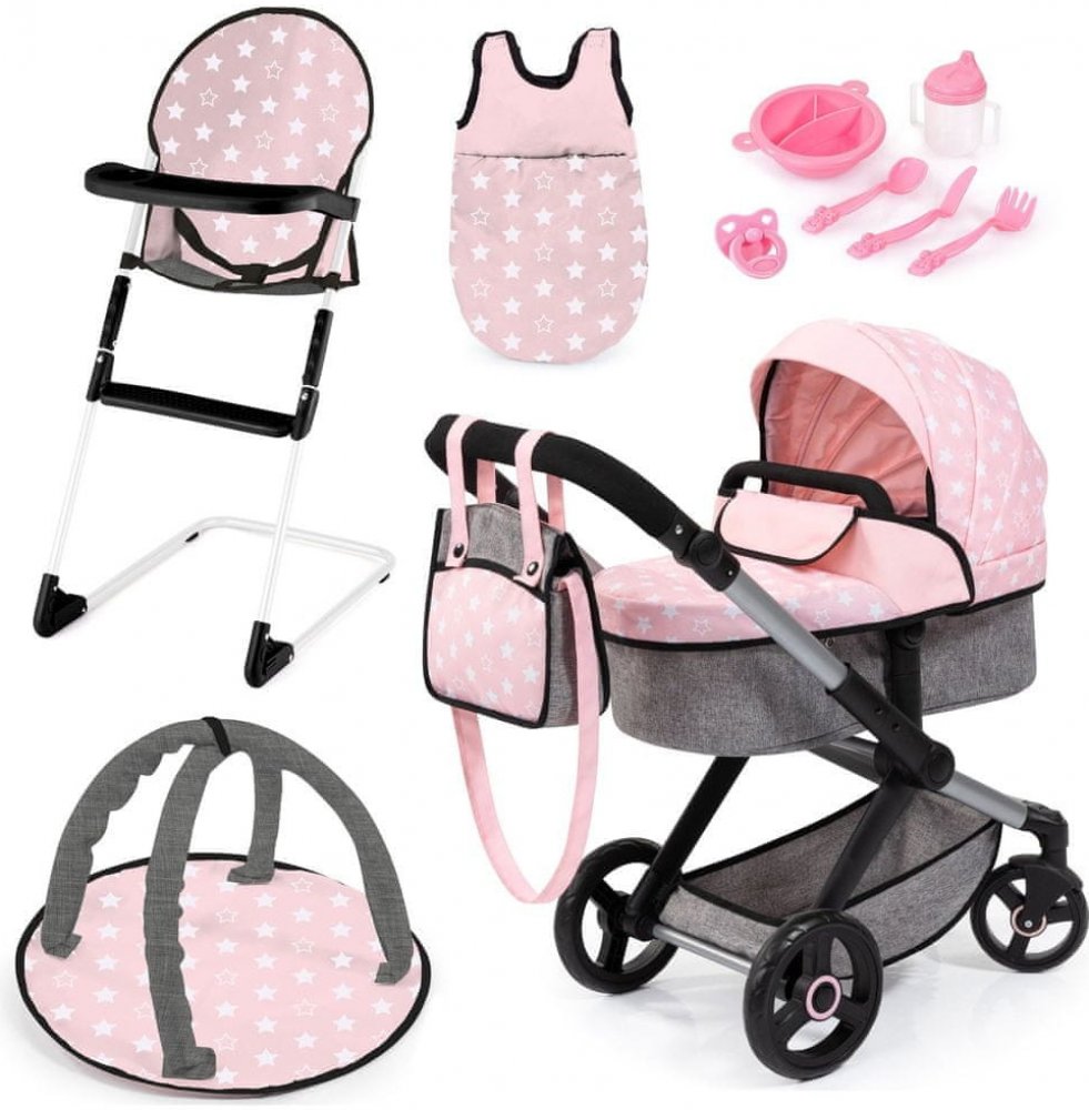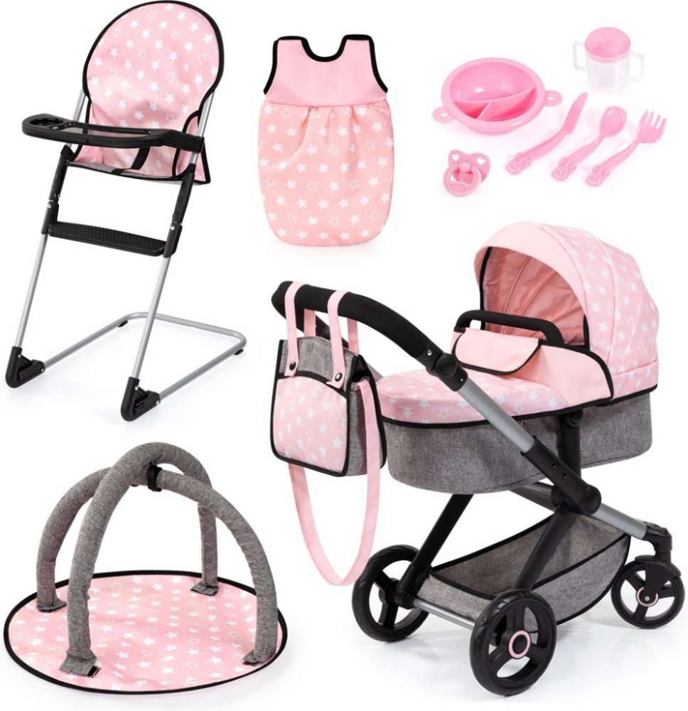 Vítejte ve vzrušujícím světě hraní a objevování s kombinovaným kočárkem pro panenky Xeo! Tato krásná sada kočárku pro panenky vybízí malé dobrodruhy k objevování umění hry na role a k rozvíjení fantazie. Vysoce kvalitní kočárek pro panenky nabízí nejen styl, ale také mnoho praktických funkcí, díky nimž bude hra ještě napínavější!Kompletní sada pro nekonečnou zábavu při hře: Kombinovaný kočárek pro panenky Xeo je dodáván s dětskou židličkou, spacím pytlem, hracím obloukem a výběrem plastových doplňků. Součástí balení je také barevně sladěná taška, která ladí s kočárkem pro panenku. Připravte se vzít panenku s sebou, kamkoli půjdete - ať už do parku, na zahradu nebo prostě jen tak domů.Moderní design se snoubí s funkčností: kočárek pro panenky nabízí prostor pro panenky až do výšky 46 cm a má výškově nastavitelnou rukojeť, kterou lze dokonale přizpůsobit výšce vašeho dítěte. Takže každý malý rodič může panenku snadno tlačit!Naši malí průzkumníci si zamilují otočná přední kolečka, která umožňují plynulý pohyb. Nosítko lze připevnit buď po směru jízdy, nebo proti směru jízdy dítěte. Otočná tlačná tyč také umožňuje snadnou změnu orientace po směru nebo ve směru jízdy dítěte.Možnost přizpůsobení: Pomocí inovativního měniče poloh si můžete vybrat z různých poloh.Všestrannost: Jednoduše přeměňte korbičku na sportovní sedačku - ideální pro akční dobrodružství!Optimální použití: Ideální pro děti od 3 let, které chtějí se svými panenkami objevovat svět.Probuďte fantazii svého dítěte s kombinovaným kočárkem pro panenky Xeo! Kočárek pro panenky nesmí chybět při hře každého malého rodiče panenek a vytváří krásné vzpomínky na dětství. Každé nové dobrodružství podporuje kreativitu a sociální interakci, protože vaše děťátko přebírá zodpovědnost za svou "rodinu panenek".Nečekejte déle a dopřejte svému dítěti nezapomenutelné zážitky s kombinovaným kočárkem pro panenky Xeo! Tato sada je ideální jako dárek pro každou příležitost a bude věrným společníkem pro spoustu her. Pořiďte si tuto láskyplně navrženou sadu kočárku pro panenky hned teď a sledujte, jak vaše dítě vklouzne do role rodiče panenky!Nezbytná výbava do každého dětského pokoje! Nechť dobrodružství začnou! Rozměry: Výška kočárku (cm): nastavitelná v rozmezí 58-71 Rozměry výrobku (cm): ŠxHxV 68 x 37 x 76Pozor! Nevhodné pro děti do 3 let. Drobné části. Nebezpečí udušení!