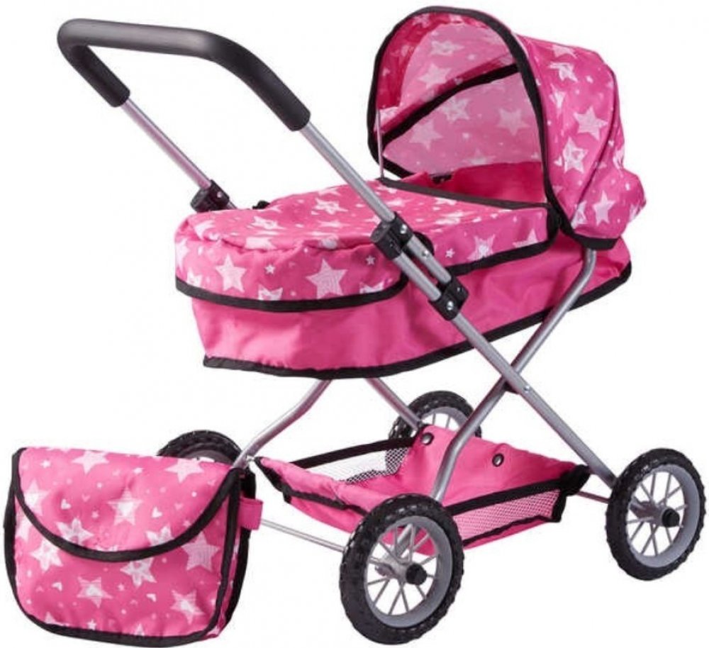 Kočárek pro panenky je vyroben z kombinace materiálů: látka, kov a plast. Jeho montáž je jednoduchá, bez šroubování. Návod k montáži naleznete uvnitř výrobku.