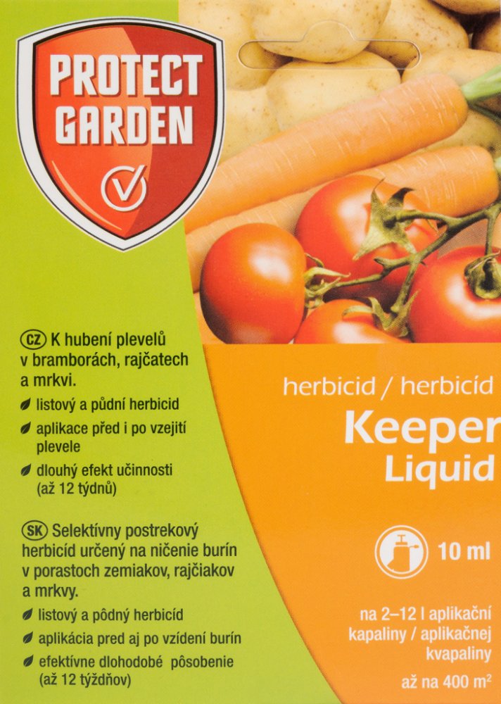 Keepr Liquid (Sencor Liquid) - doprodej - je selektivní postřikový herbicid ve formě suspenzního koncentrátu (SC) k hubení plevelů v porostech bramboru, mrkve a rajčete. Likvidace plevelů v barmborách před vzejitím i po vzejití. Končí registrace, přípravek je možné prodávat do 31. 5. 2025. Bohužel, nebude na trhu v maloobchodním balení žádná náhrada postřiku na dvouděložné plevele do brambor.