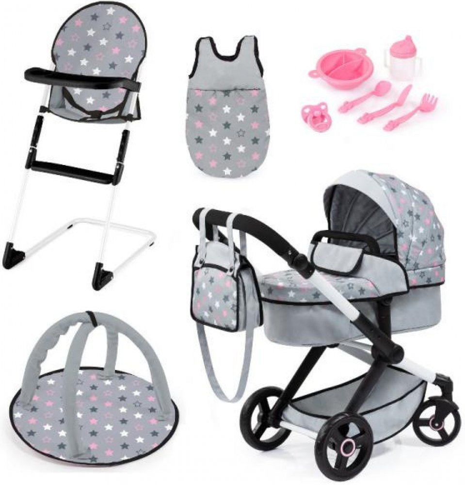 Vítejte ve vzrušujícím světě hraní a objevování s kombinovaným kočárkem pro panenky Xeo! Tato krásná sada kočárku pro panenky vybízí malé dobrodruhy k objevování umění hry na role a k rozvíjení fantazie. Vysoce kvalitní kočárek pro panenky nabízí nejen styl, ale také mnoho praktických funkcí, díky nimž bude hra ještě napínavější!Kompletní sada pro nekonečnou zábavu při hře: Kombinovaný kočárek pro panenky Xeo je dodáván s dětskou židličkou, spacím pytlem, hracím obloukem a výběrem plastových doplňků. Součástí balení je také barevně sladěná taška, která ladí s kočárkem pro panenku. Připravte se vzít panenku s sebou, kamkoli půjdete - ať už do parku, na zahradu nebo prostě jen tak domů.Moderní design se snoubí s funkčností: kočárek pro panenky nabízí prostor pro panenky až do výšky 46 cm a má výškově nastavitelnou rukojeť, kterou lze dokonale přizpůsobit výšce vašeho dítěte. Takže každý malý rodič může panenku snadno tlačit!Naši malí průzkumníci si zamilují otočná přední kolečka, která umožňují plynulý pohyb. Nosítko lze připevnit buď po směru jízdy, nebo proti směru jízdy dítěte. Otočná tlačná tyč také umožňuje snadnou změnu orientace po směru nebo ve směru jízdy dítěte.Možnost přizpůsobení: Pomocí inovativního měniče poloh si můžete vybrat z různých poloh.Všestrannost: Jednoduše přeměňte korbičku na sportovní sedačku - ideální pro akční dobrodružství!Optimální použití: Ideální pro děti od 3 let, které chtějí se svými panenkami objevovat svět.Probuďte fantazii svého dítěte s kombinovaným kočárkem pro panenky Xeo! Kočárek pro panenky nesmí chybět při hře každého malého rodiče panenek a vytváří krásné vzpomínky na dětství. Každé nové dobrodružství podporuje kreativitu a sociální interakci, protože vaše děťátko přebírá zodpovědnost za svou "rodinu panenek".Nečekejte déle a dopřejte svému dítěti nezapomenutelné zážitky s kombinovaným kočárkem pro panenky Xeo! Tato sada je ideální jako dárek pro každou příležitost a bude věrným společníkem pro spoustu her. Pořiďte si tuto láskyplně navrženou sadu kočárku pro panenky hned teď a sledujte, jak vaše dítě vklouzne do role rodiče panenky!Nezbytná výbava do každého dětského pokoje! Nechť dobrodružství začnou! Rozměry: Výška kočárku (cm): nastavitelná v rozmezí 58-71 Rozměry výrobku (cm): ŠxHxV 68 x 37 x 76Pozor! Nevhodné pro děti do 3 let. Drobné části. Nebezpečí udušení!