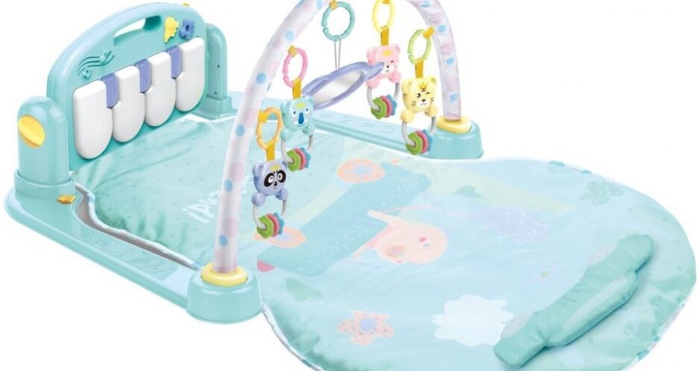 Miminka rády objevují nové prostory a pestrobarevné hračky co šustí, pískají, hrají. Zde mohou pozorovat hračky a snažit se o první kontakty a doteky, rozvíjet hmat, zrak i sluch díky šustivým a pohyblivým částem. Na hrazdičce je zavěšeno několik hraček, ale na poutka můžete zavěsit i další. Měkká polstrovaná deka se svěžím designem je lehká a snadno přenosná. Součástí deky je i malý polštářek. Připojené piánko funguje ve třech režimech: přehrává hudbu nebo funguje jako klavírek. Zavěšené hračky: chrastící zvířátka a zrcadlo. Hrazdičky se dají odepnout, stejně tak jako hračky a piánko. Příjemný a měkký materiál umožňuje pohodlné ležení na bříšku nebo zádech a umožňuje svobodu pohybu vašeho dítěte. Hrací deka poskytuje bezpečné a příjemné prostředí a stane se oblíbeným místem pro vaše děťátko.