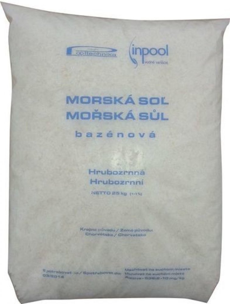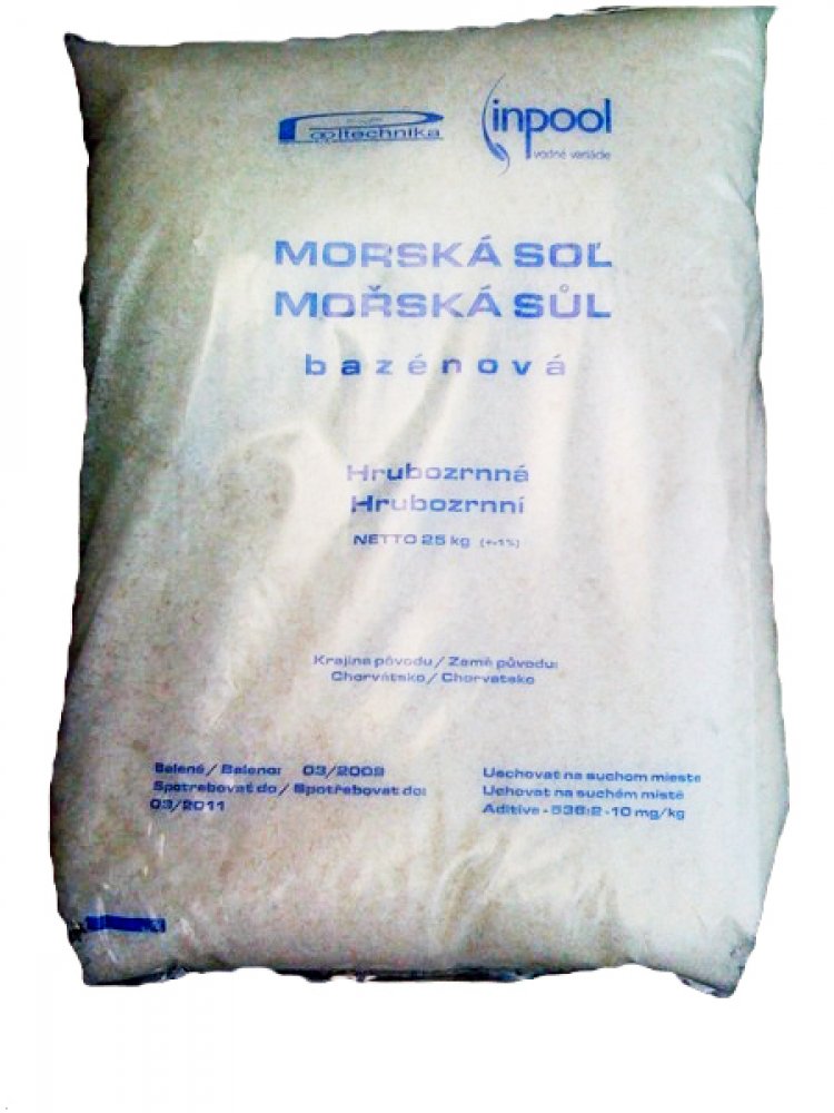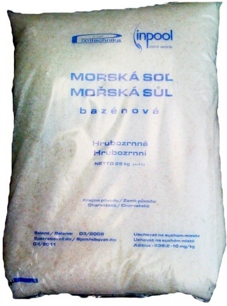 Námi prodávaná bazénová sůl je získávána z odsolovacích jezer na pobřeží Chorvatska. Sůl je čištěná a hrubozrnně drcená. Obsahuje 96% NaCl, aditiva proti zatvrdnutí a množství dalších minerálů obsažených v mořské vodě. Oproti klasické kuchyňské soli neobsahuje jód a obsah vápníku je snížen na minimum. Nedoporučujeme požívat kuchyňskou sůl z důvodu obsahu již zmíněného jódu. Jód se díky elektrolýze...