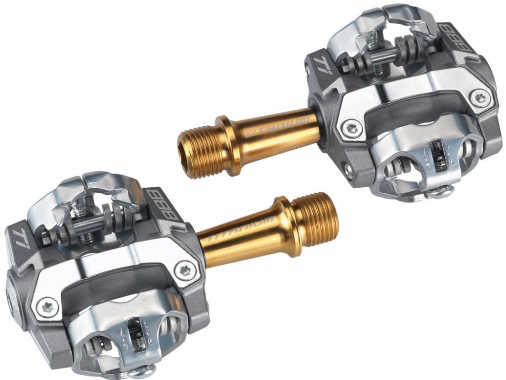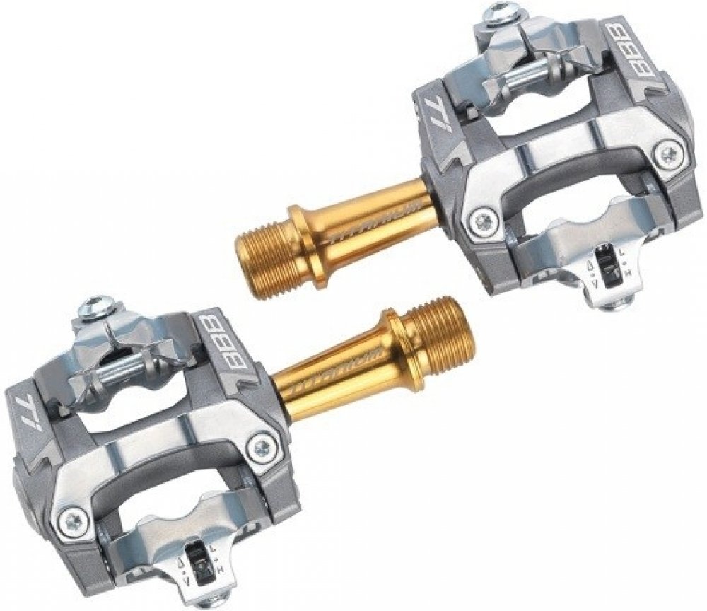 Nejlehčí a nejkvalitnější MTB pedály v nabídce značky BBB skvělý desing. Výztuhy z nerezové oceli Otevřený design pro snadné odstnanění bláta Váhový limit jezdce: 85 kg Titanová oska Zapouzdřené ložisko na vnitřní straně Nastavitelná vůle SPD-kompatibilní Cartridgová ložiska na vnější straně Obsahuje kufry BBB Click&Go Top model MTB pedálů, nejlehčí v nabídce.
