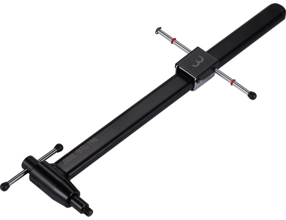 Nástroj pro rovnání patek přehazovačky. Dlouhý a pevný profil s přesným kalibrem. Gumové konce chrání ráfek před poškrábáním. Vyrobeno z vysoce kvalitní oceli pro dlouhou životnost. Hmotnost: 295 gramů.